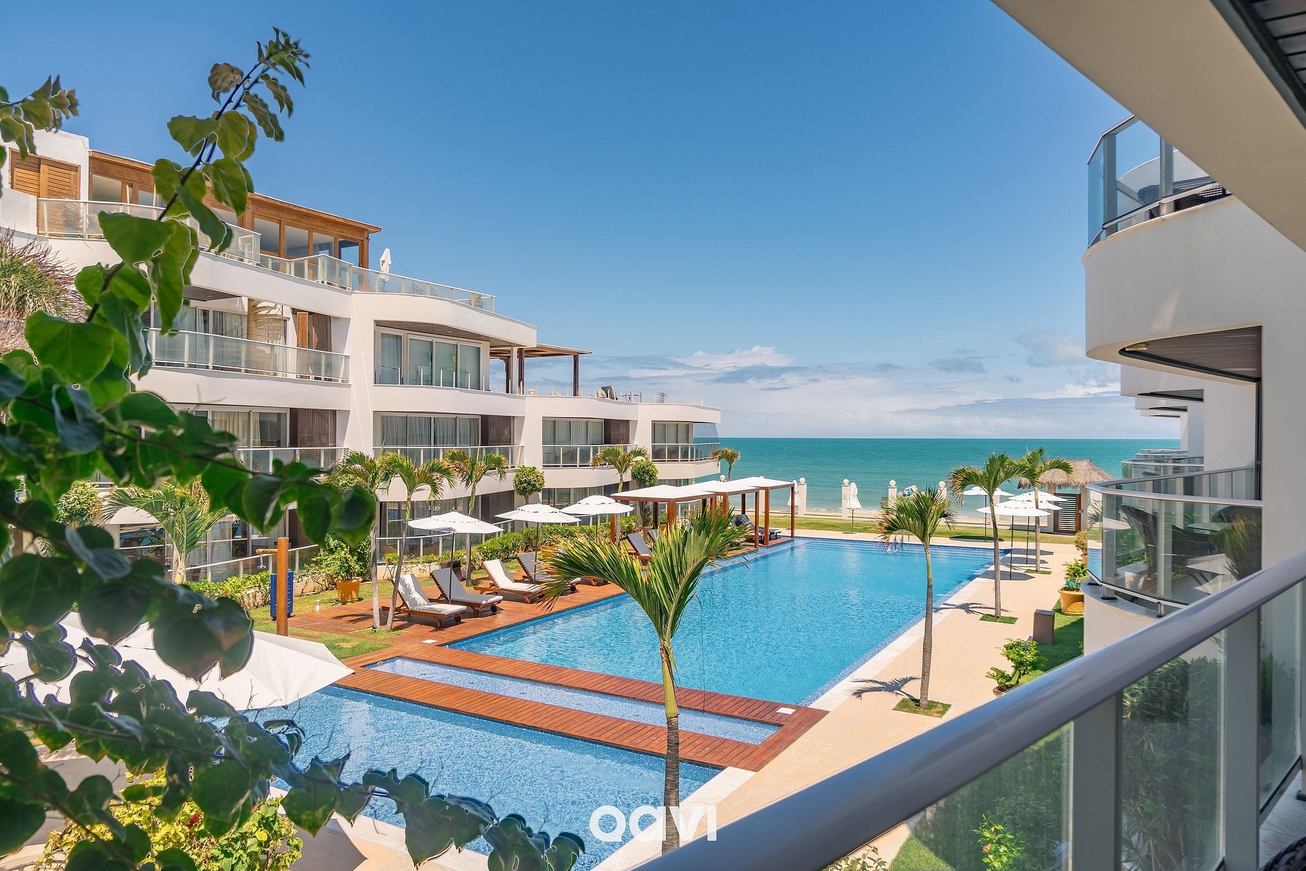 Varanda: ampla, com vista deslumbrante para a piscina e área de lazer.