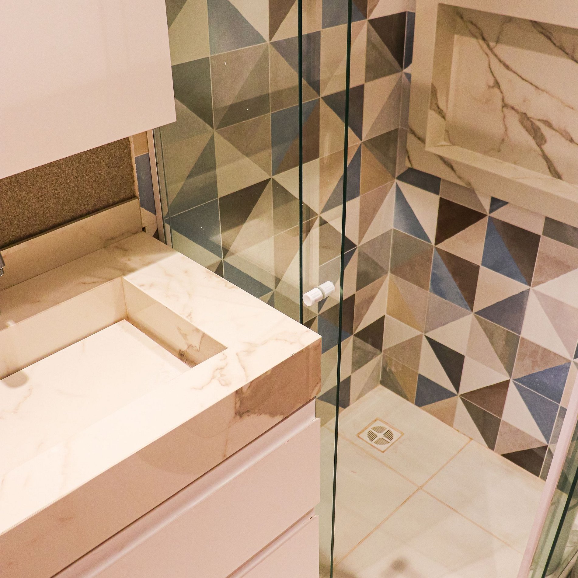 Banheiro: utensílios básicos e chuveiro elétrico.