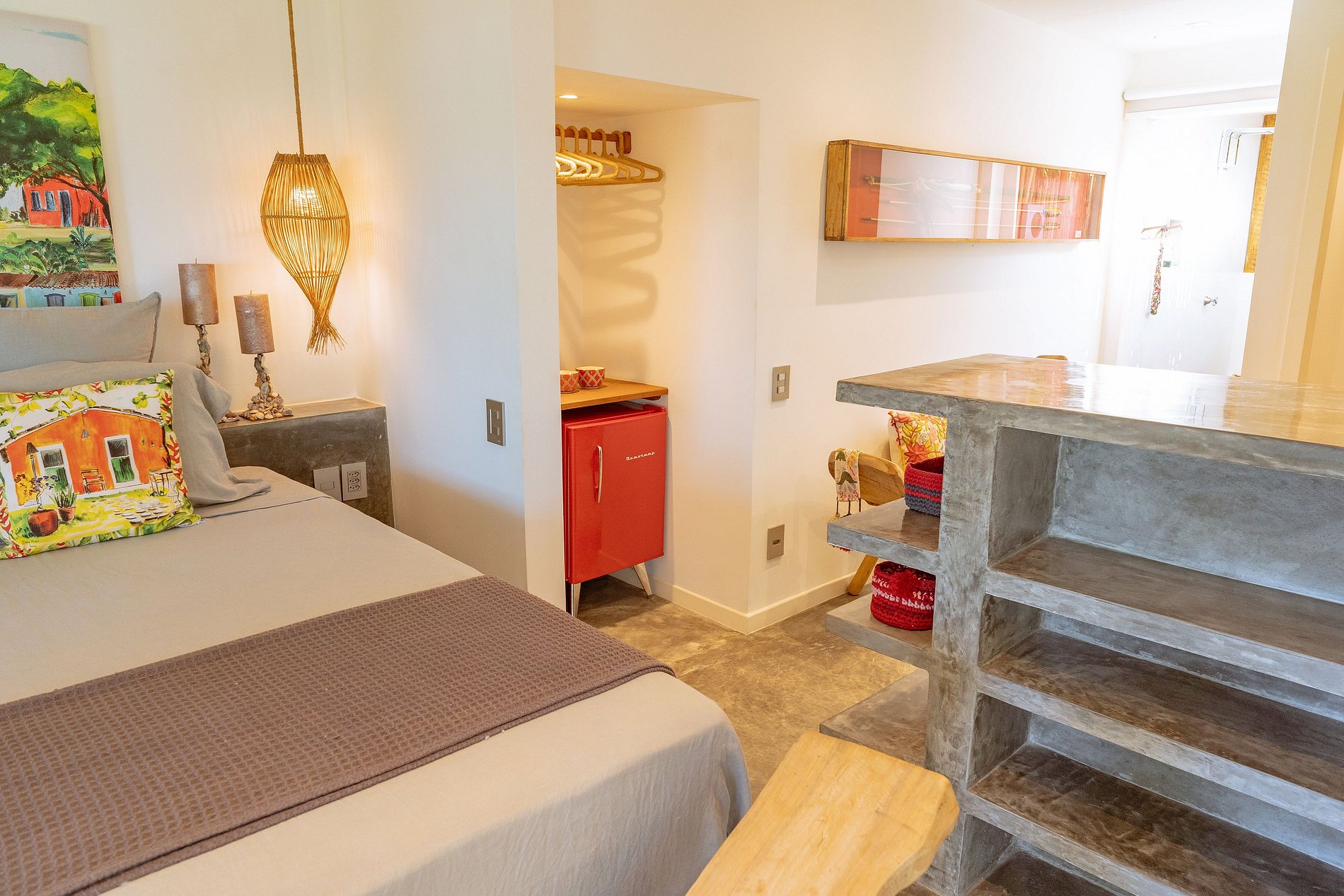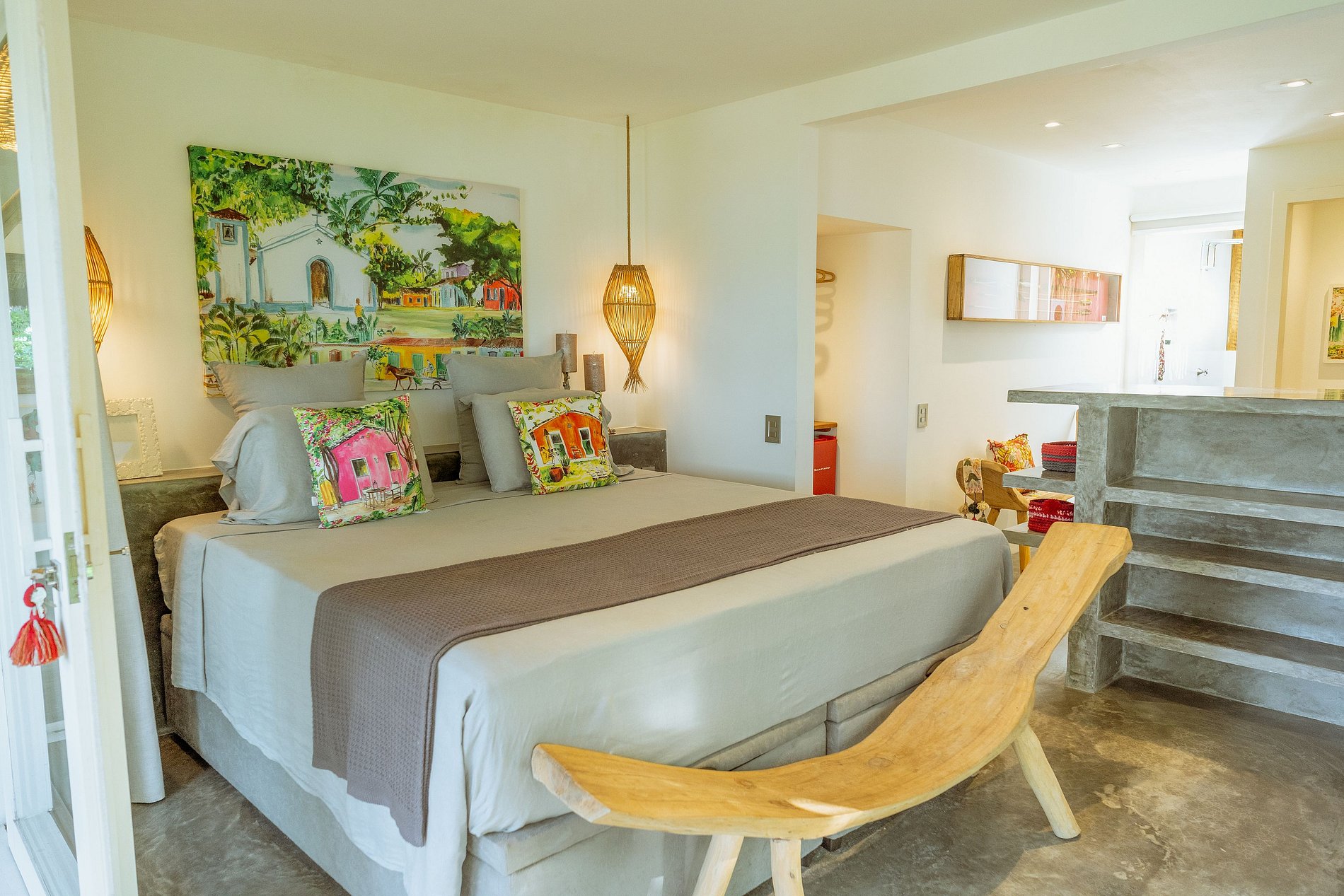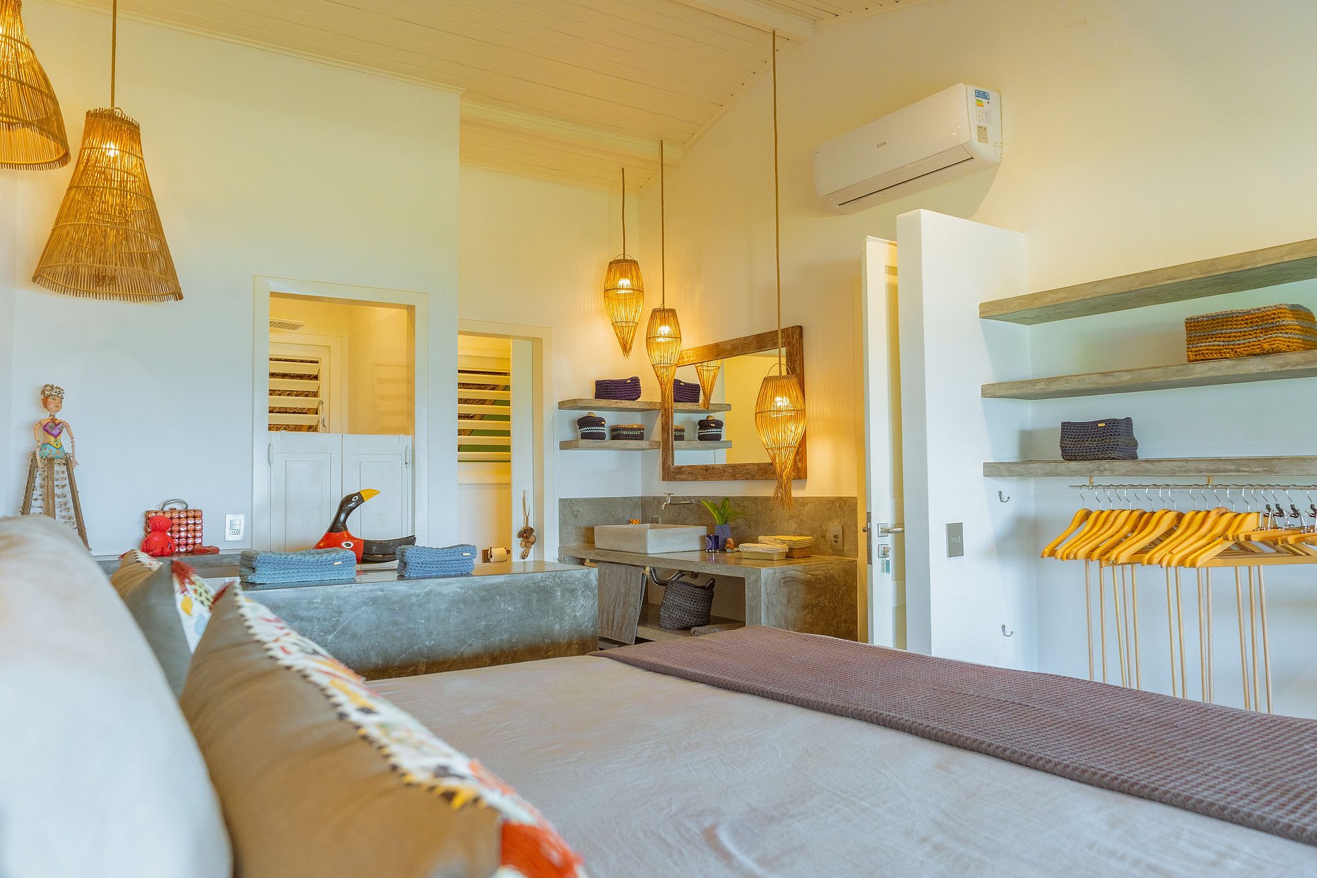 Contando com 4 quartos tipo suíte, com suas vistas deslumbrantes para o mar, são um convite ao relaxamento absoluto. Com camas king size, terraços privativos e comodidades como ar condicionado, Smart TV, Wi-Fi e frigobar, cada momento é uma indulgência.