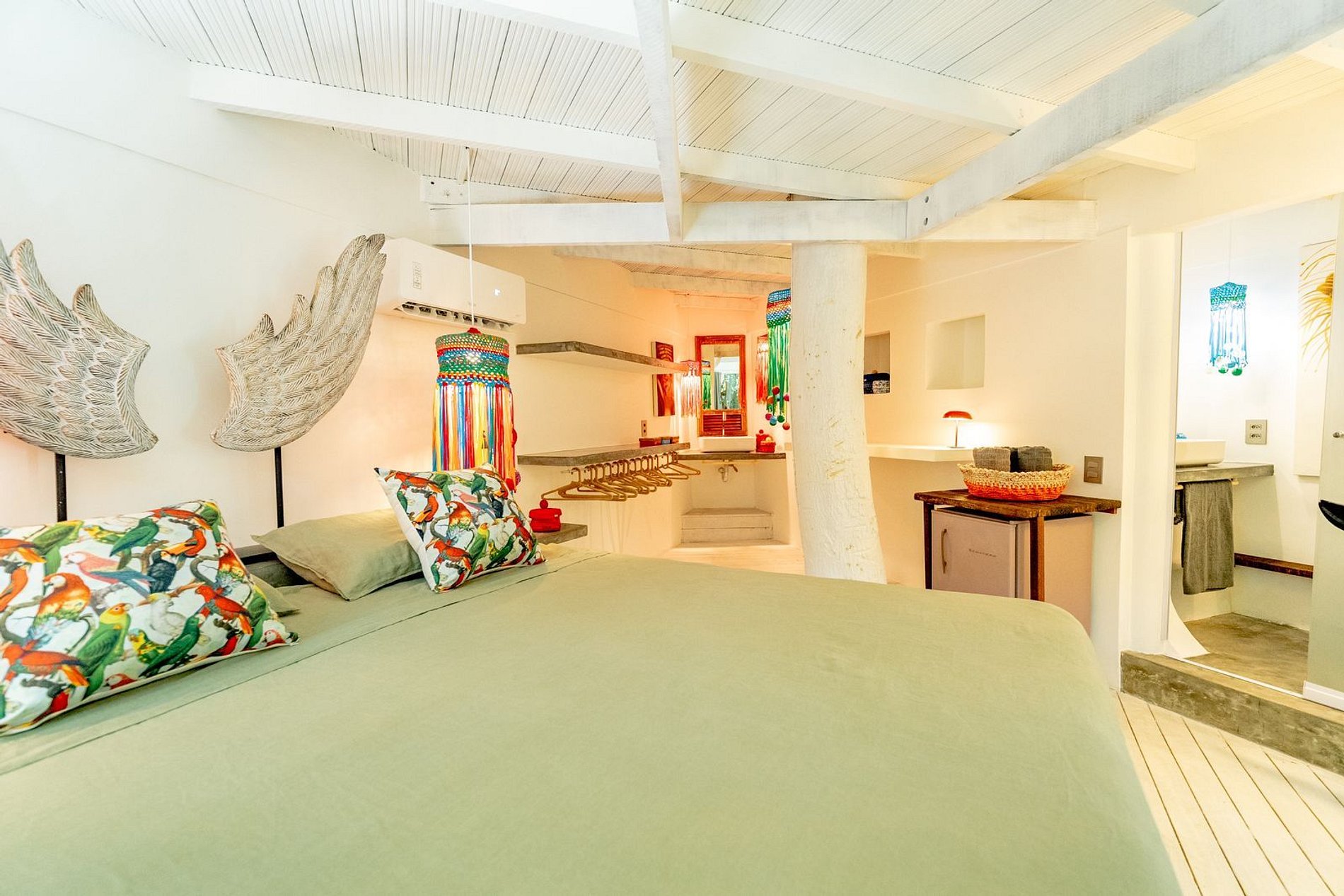 Cada detalhe da Vila Uxua é uma expressão de elegância e exclusividade. Desde a arquitetura contemporânea até às peças de arte cuidadosamente selecionadas que adornam cada quarto, cada espaço respira um charme singular. Os 4 quartos tipo suíte, com suas vistas deslumbrantes para o mar, são um convite ao relaxamento absoluto. Com camas king size, terraços privativos e comodidades como ar condicionado, Smart TV, Wi-Fi e frigobar, cada momento é uma indulgência.