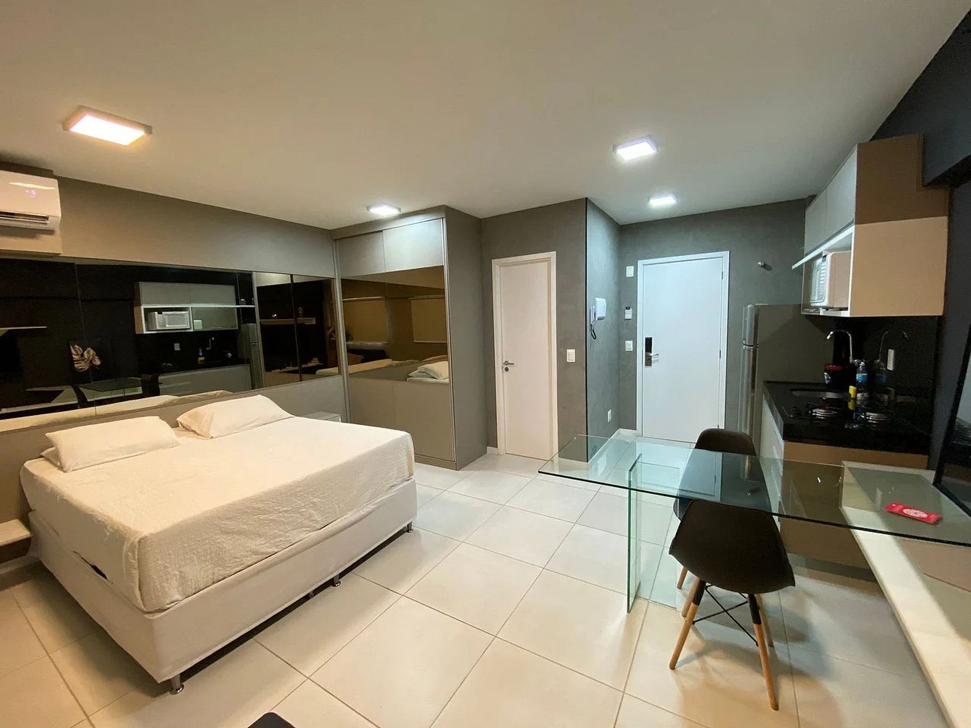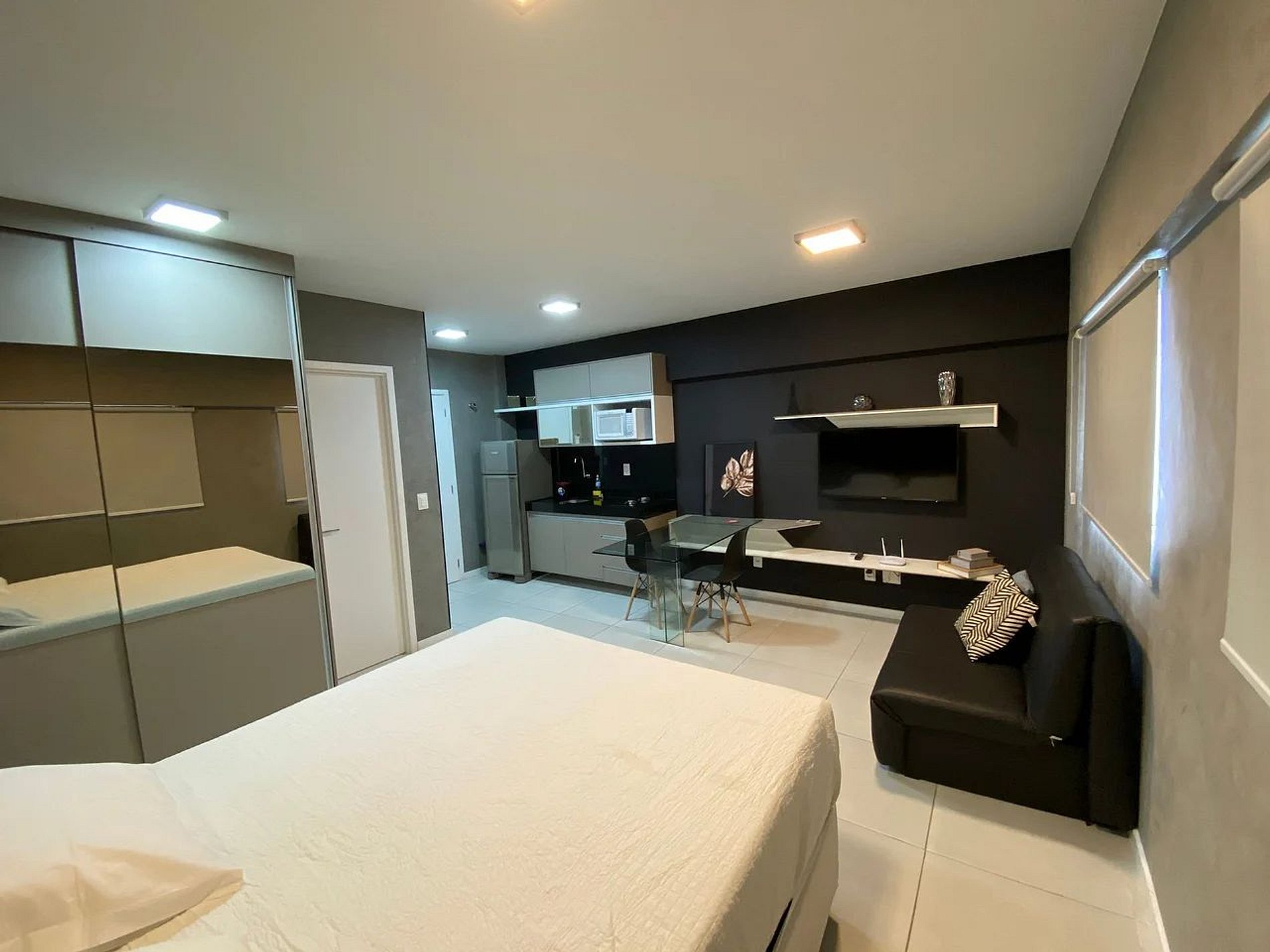 O estúdio foi planejado para oferecer funcionalidade e conforto, com ambientes integrados e bem distribuídos.