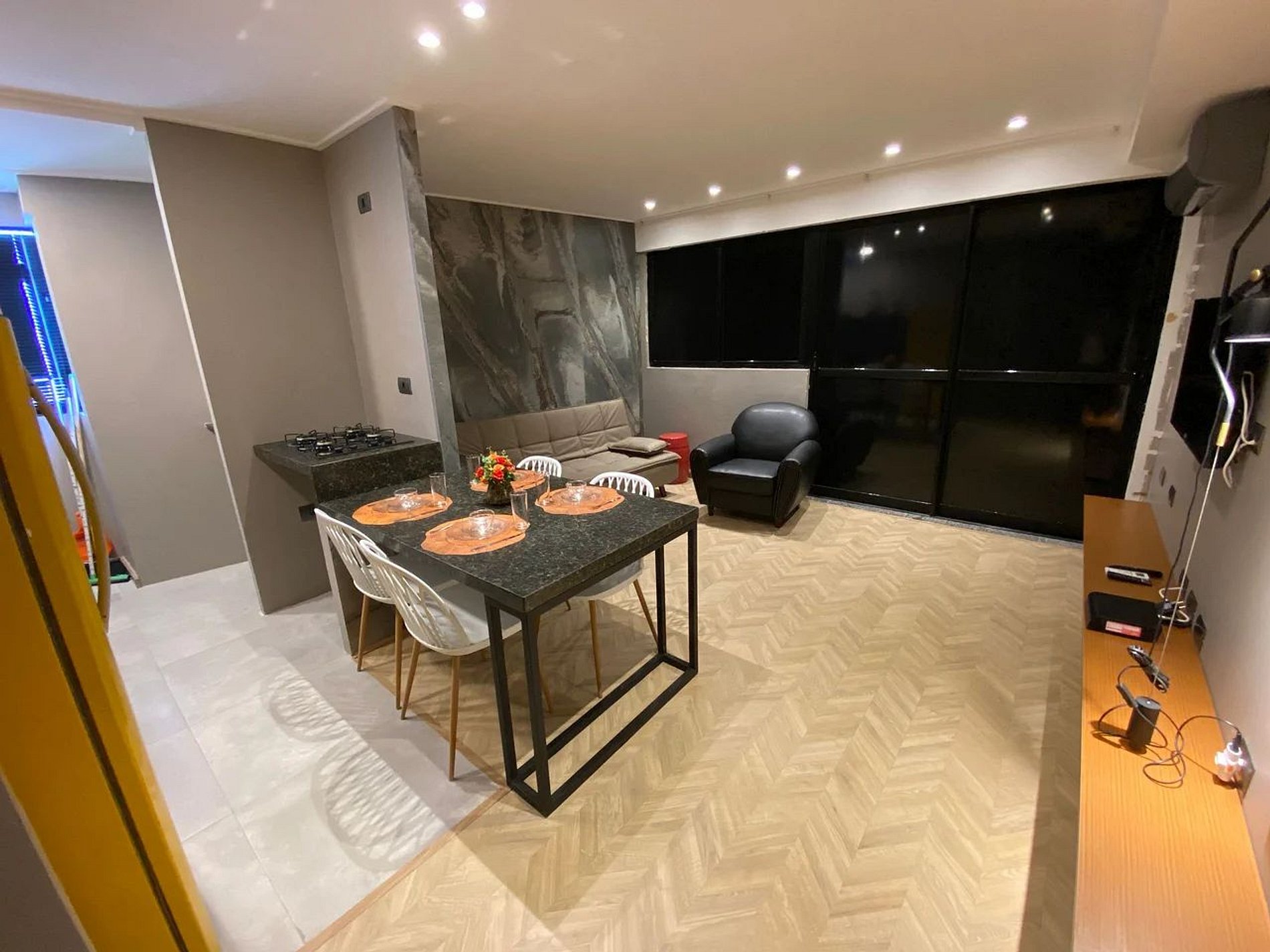 Perfeito para até 04 hóspedes, o apartamento oferece ambientes bem distribuídos e equipados para uma estadia completa.
