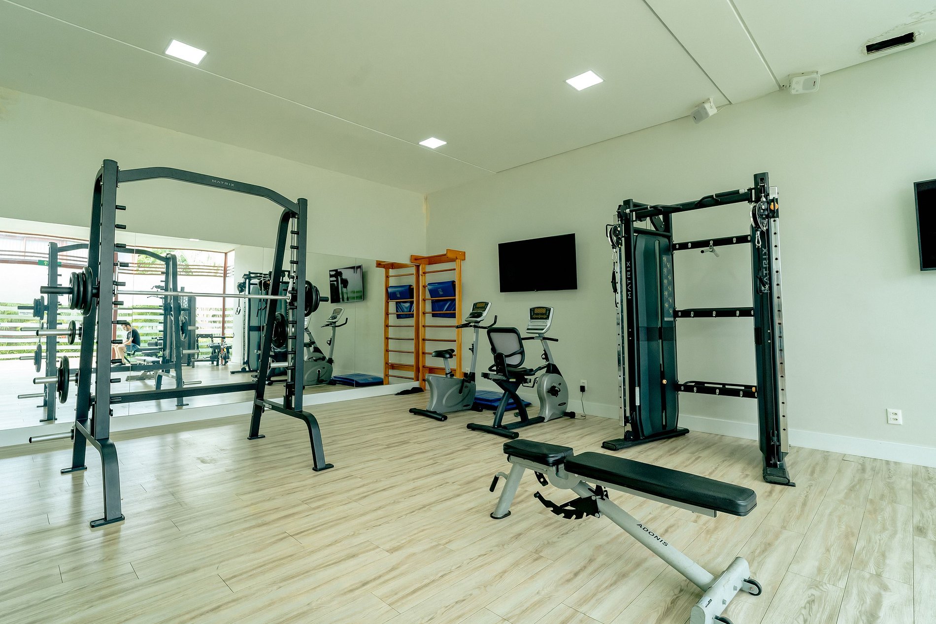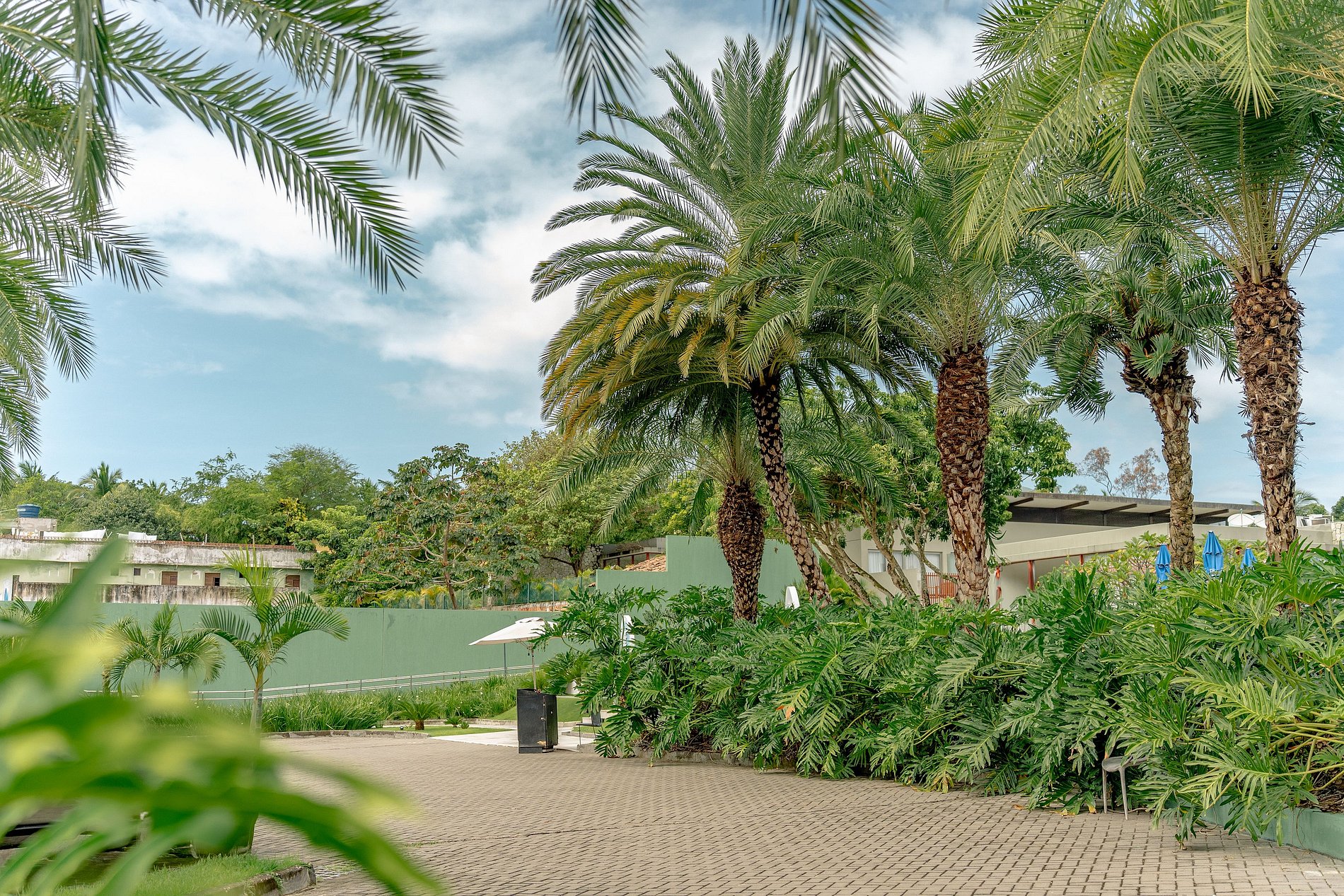 O condomínio possui um belo jardim e uma piscina adulta central, além disso, possui uma praia artificial com espreguiçadeiras, academia e estacionamento privativo (1 vaga por flat).