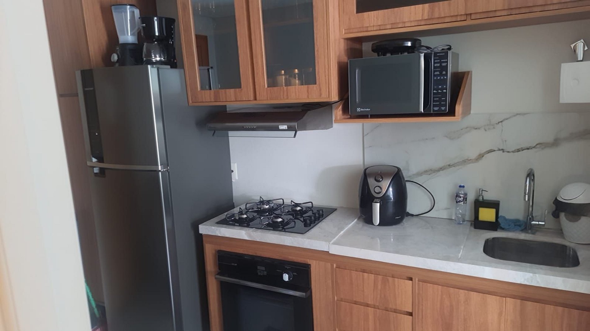 A unidade conta com 2 quartos com acesso a varanda, sendo um suíte, 1 banheiro completo e 1 cozinha .