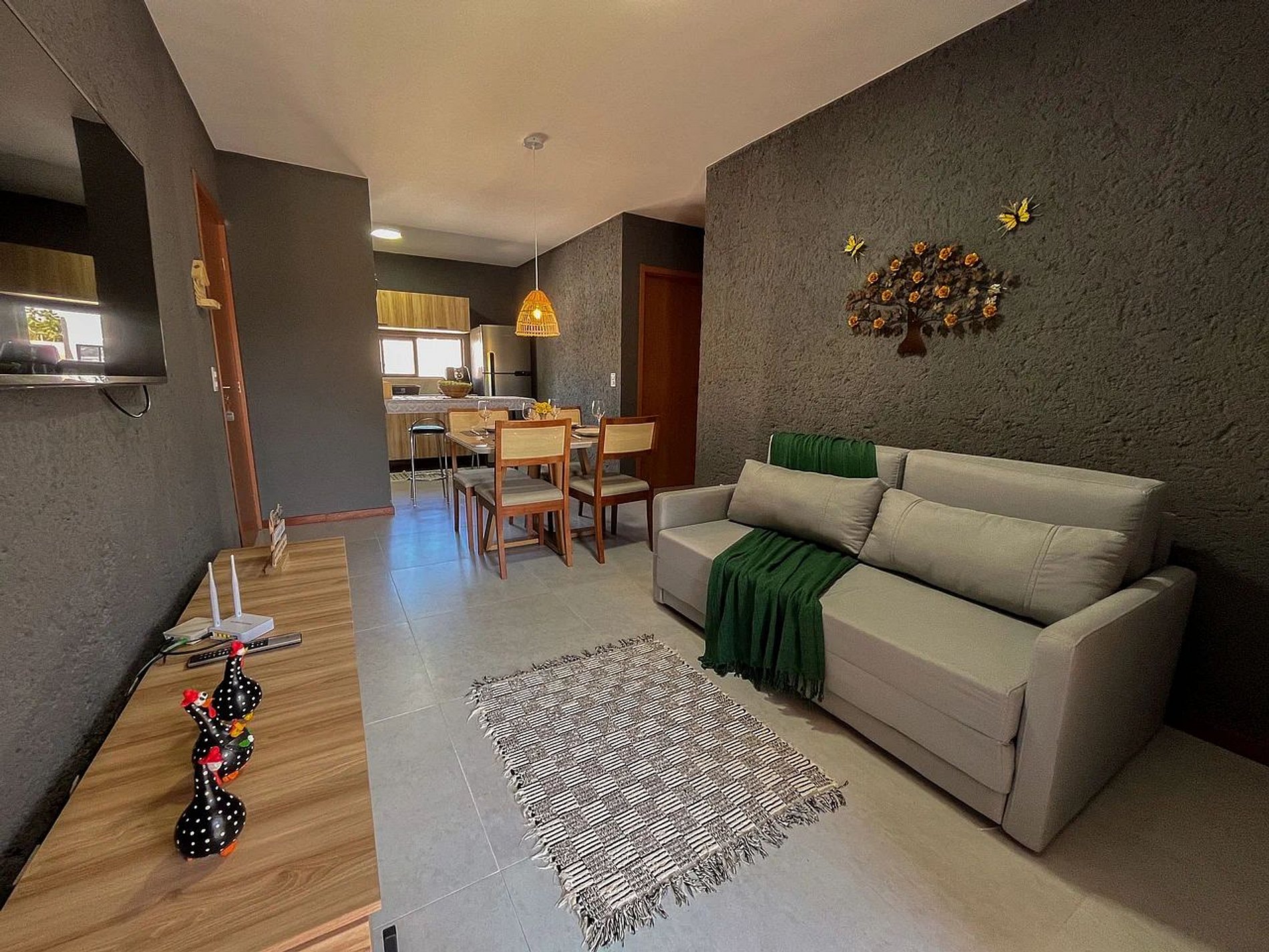 Perfeito para até 05 hóspedes, o apartamento oferece ambiente integrado, funcional e bem equipado para uma estadia completa.