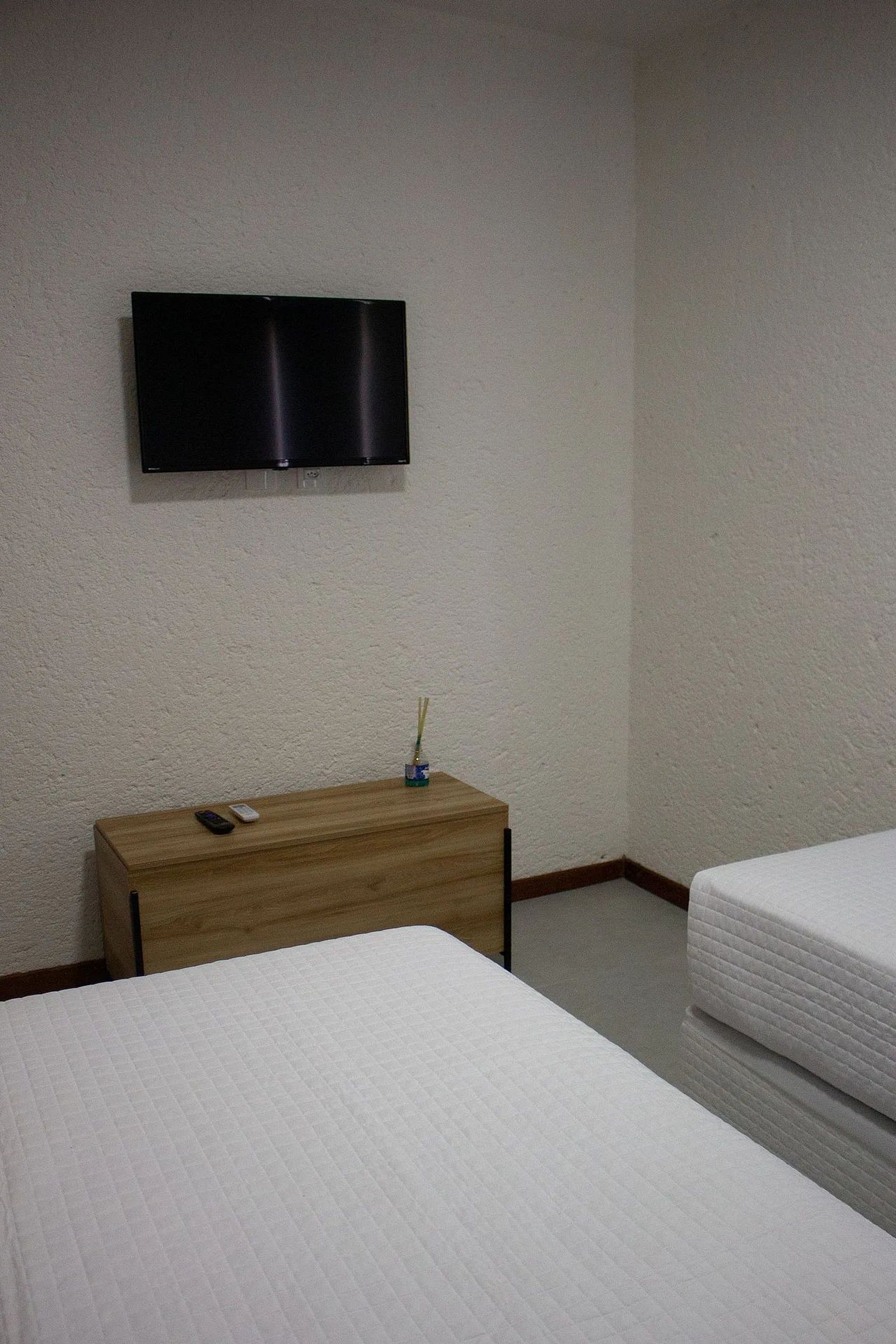 Quarto: 02 cama de solteiro, ar condicionado, 01 arara com cabides e TV