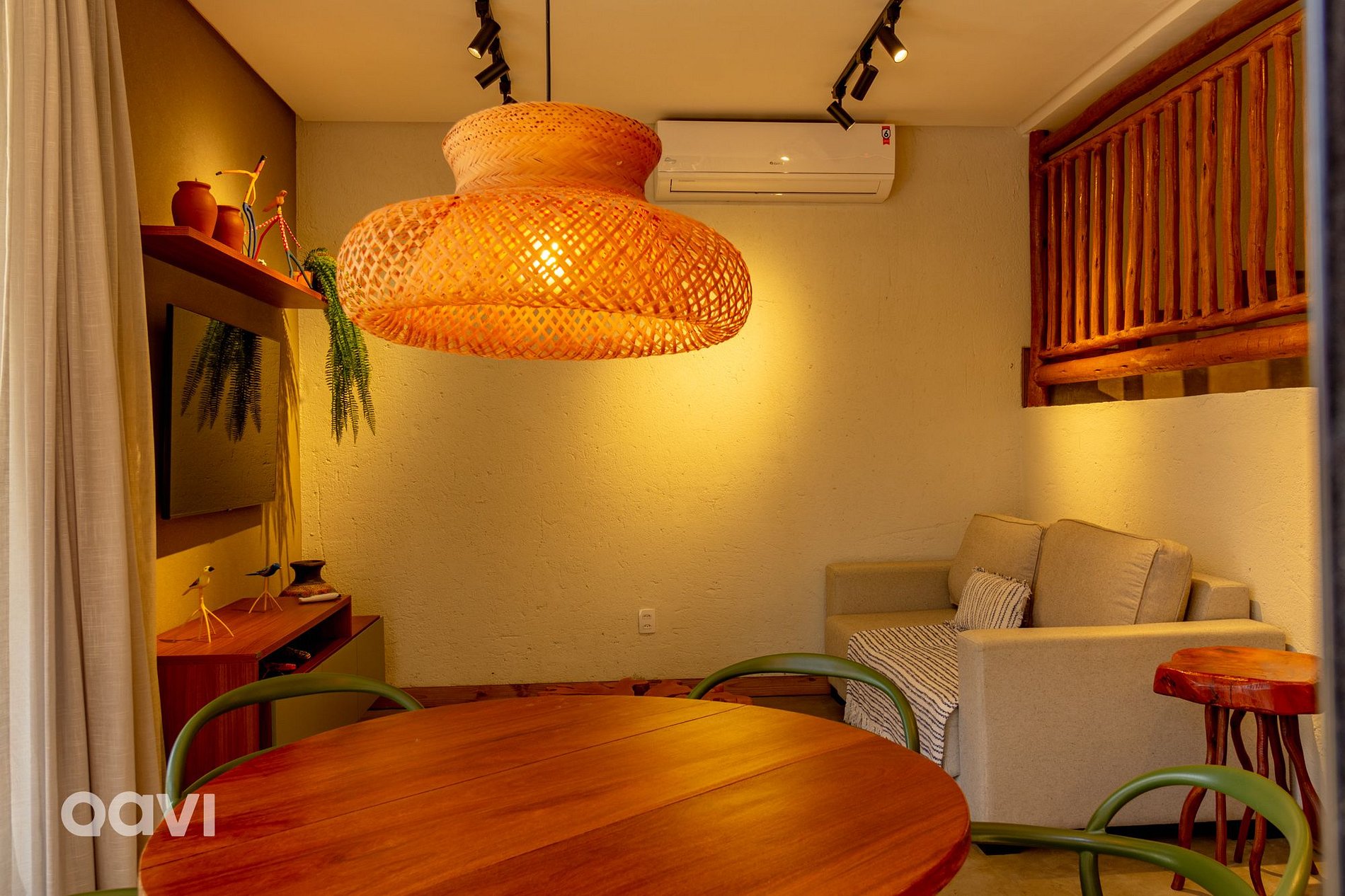 • Sala: Espaço amplo com ambiente integrado e televisão Smart, mesa para refeições e integração com a cozinha;