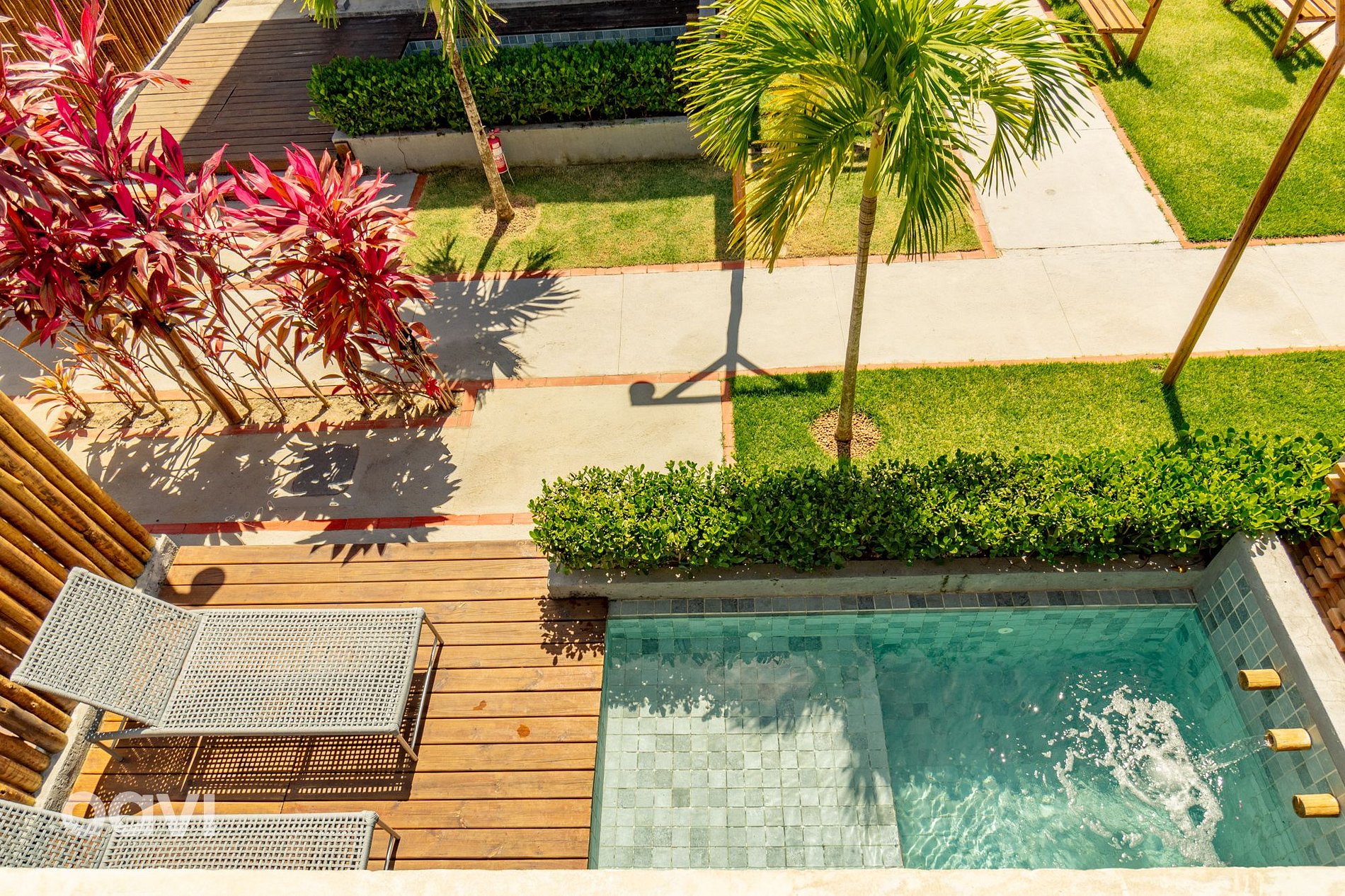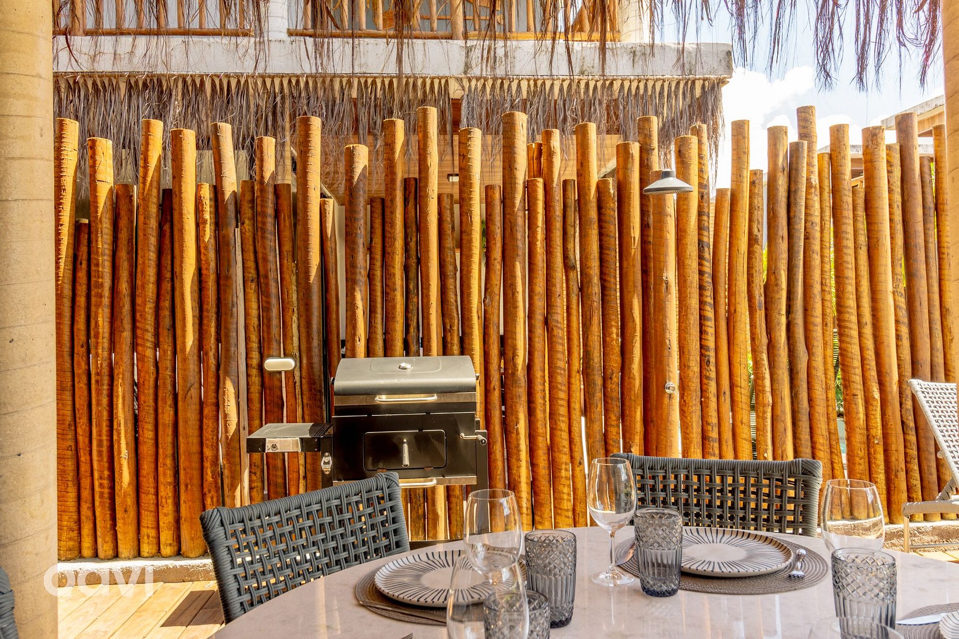 • Área da varanda térrea externa: Piscina, churrasqueira e mesa para refeições;