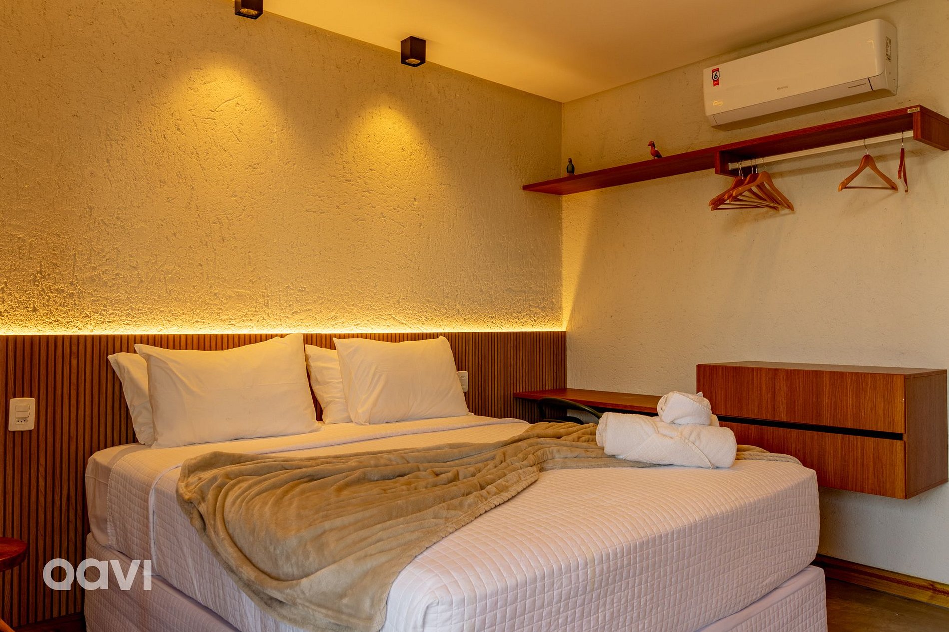 • Suíte 2: Uma cama de casal, ar-condicionado, TV Smart, armário e blackout nas cortinas;