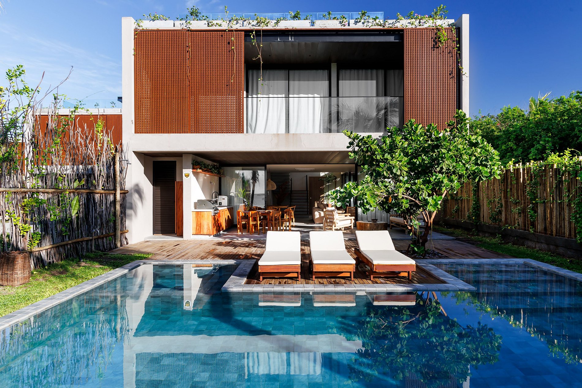 Hóspedes têm acesso total e exclusivo à casa, incluindo piscina, rooftop, área gourmet e estacionamento.
