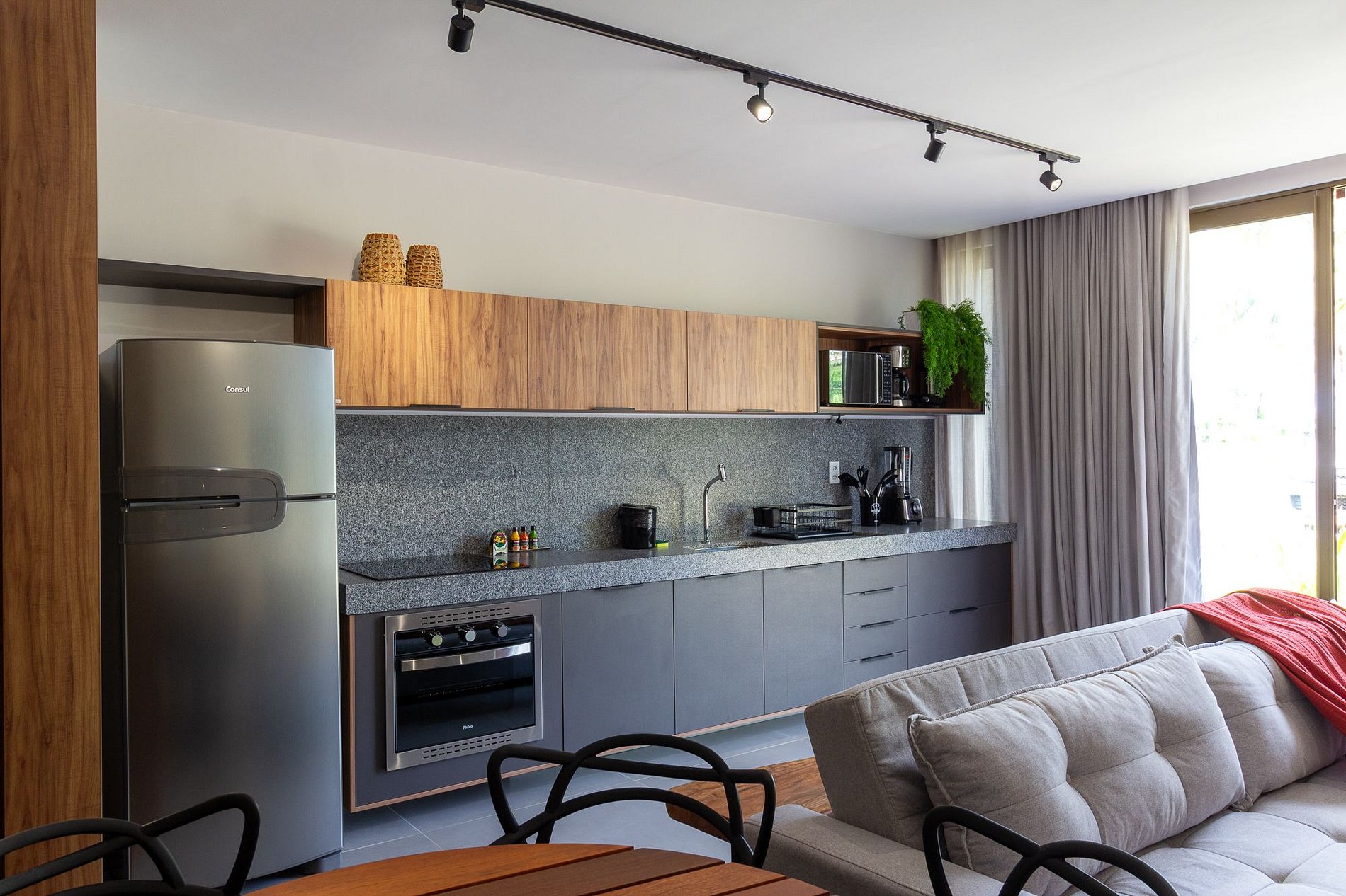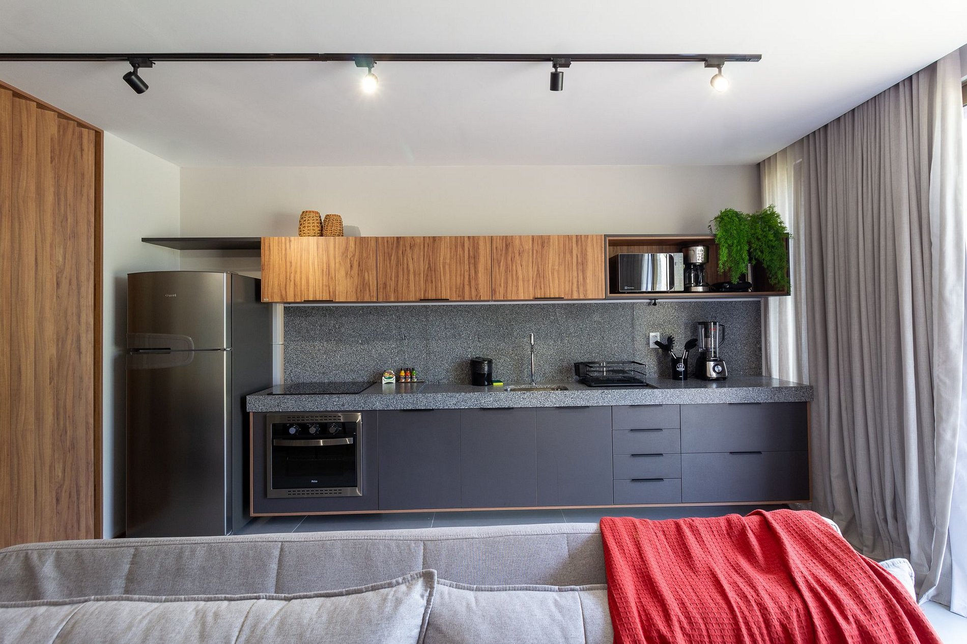• Cozinha: Geladeira, fogão por indução, cutelaria básica.