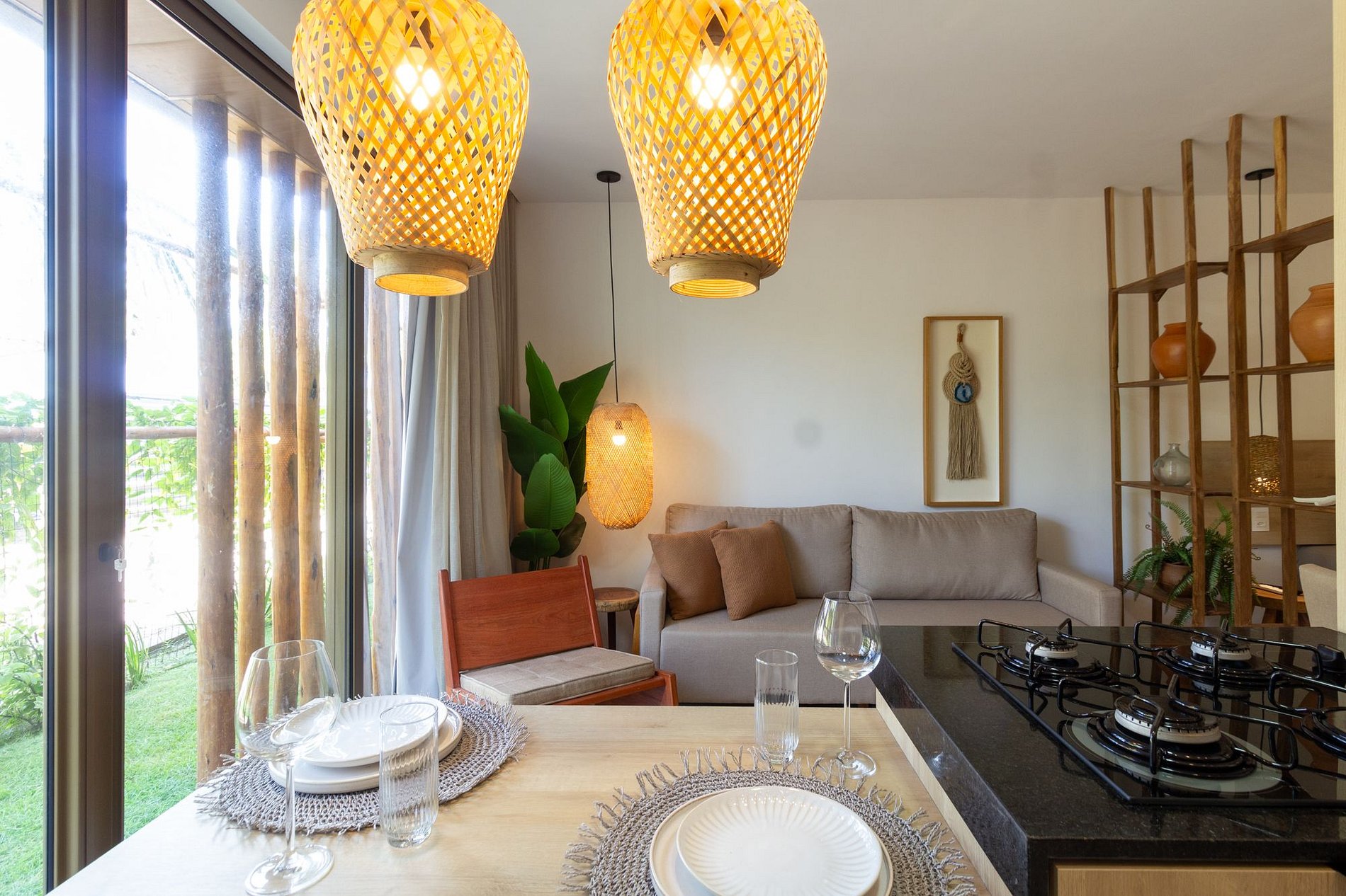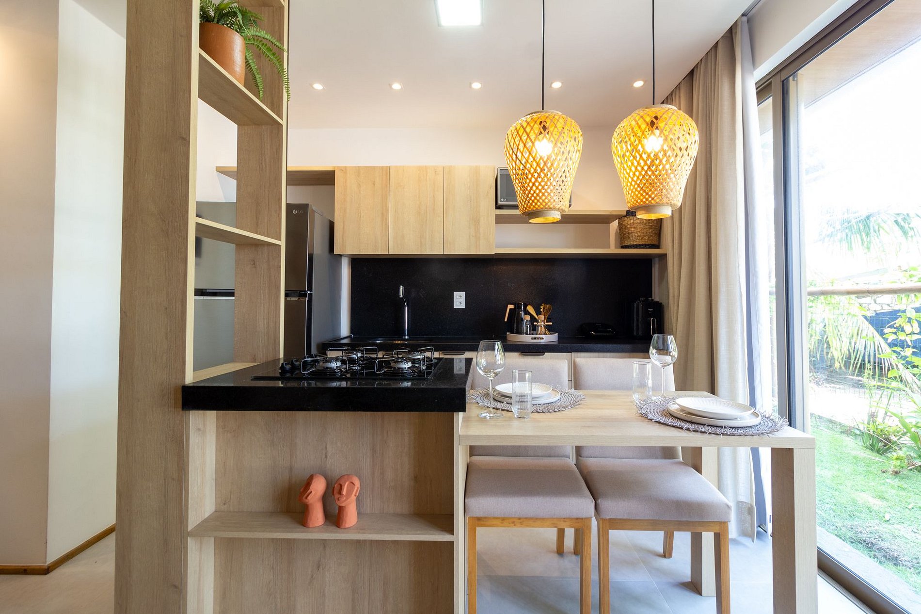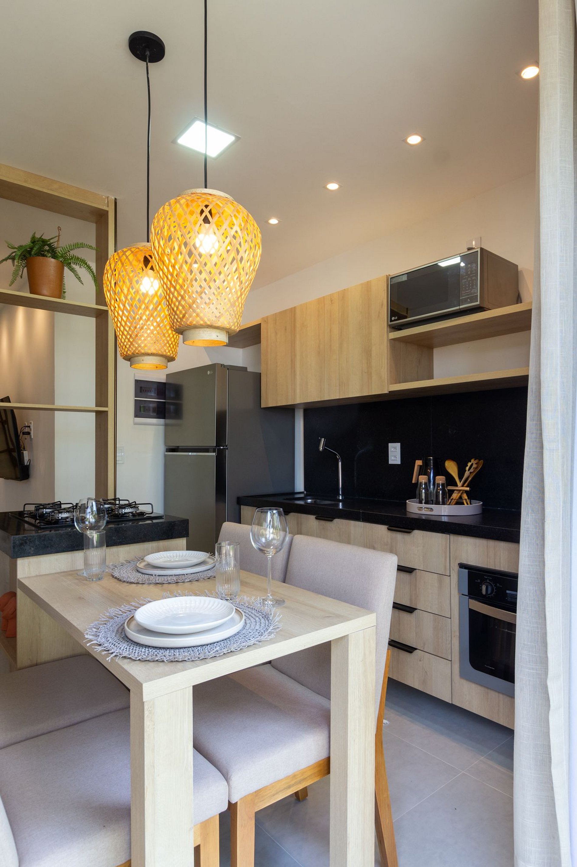 - Cozinha completa com cooktop, utensílio de cozinha e cutelaria em geral;