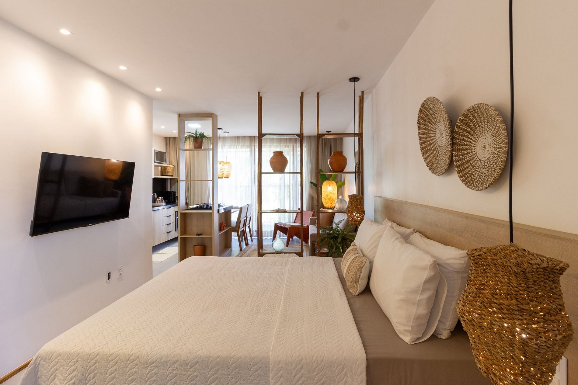 Studio em condomínio a apenas 30 metros da paradisíaca praia de Tatuamunha, super completo sala de estar e cozinha integrados, dentro do condomínio de luxo Essence Tatuamunha que conta com segurança 24h e uma estrutura de lazer com piscinas incluindo uma no rooftop que oferece uma vista sem igual.
