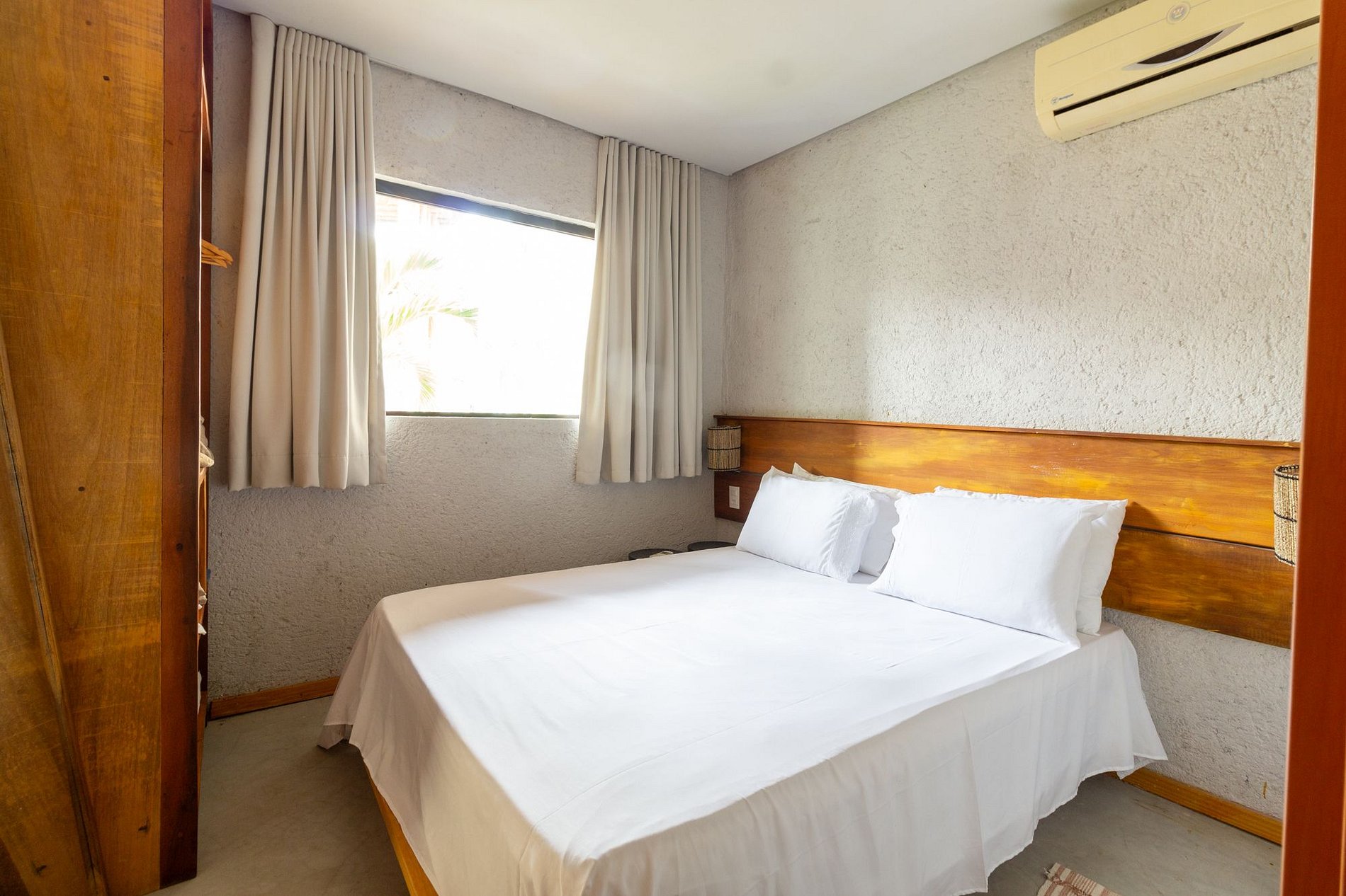 • Suíte 1: cama de casal, ar-condicionado, aparelhos decorativos e banheiro com utensílios básicos;