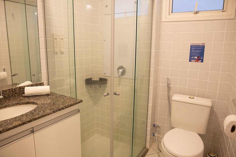- Banheiro grande e completo: chuveiro aquecido, sanitário e ducha.