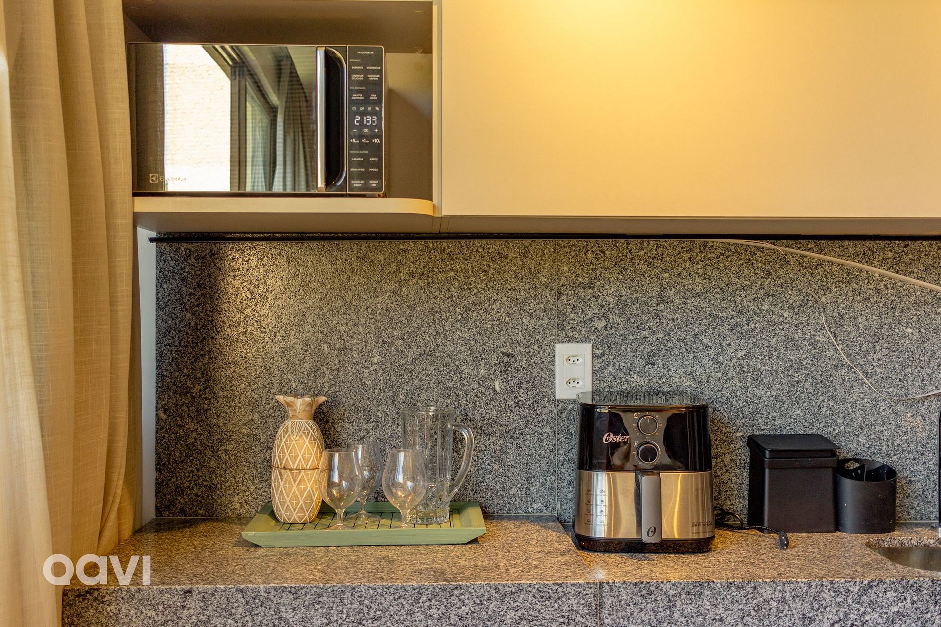 • Sala: sofá-cama de casal, Smart TV, cortinas blackout;