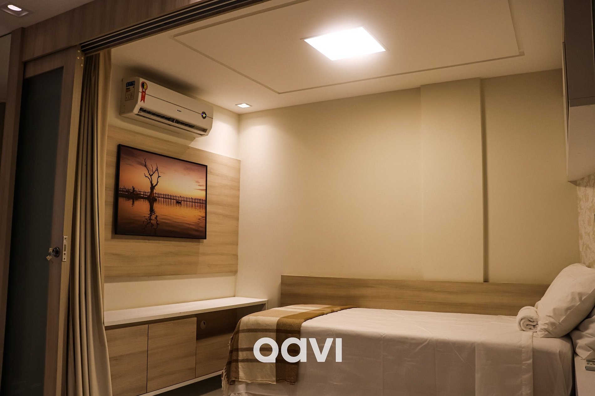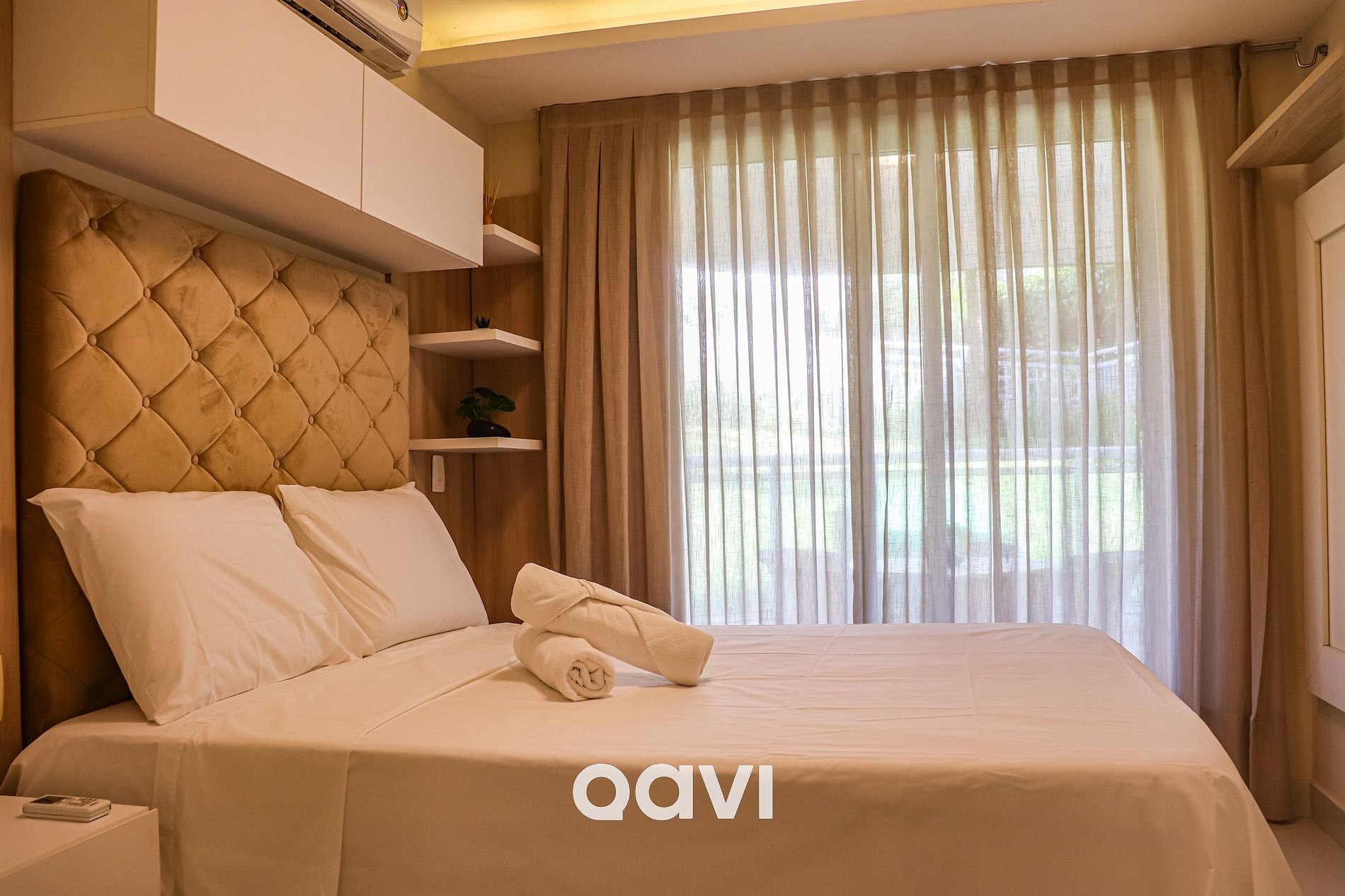 1 cama de casal, Banheiro completo, Closet, Ar-condicionado, Cortina blackout, Acesso direto à varanda