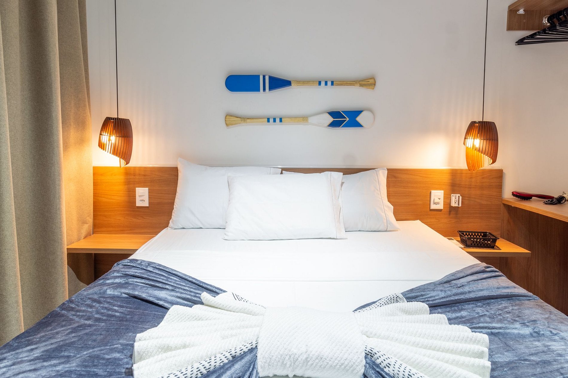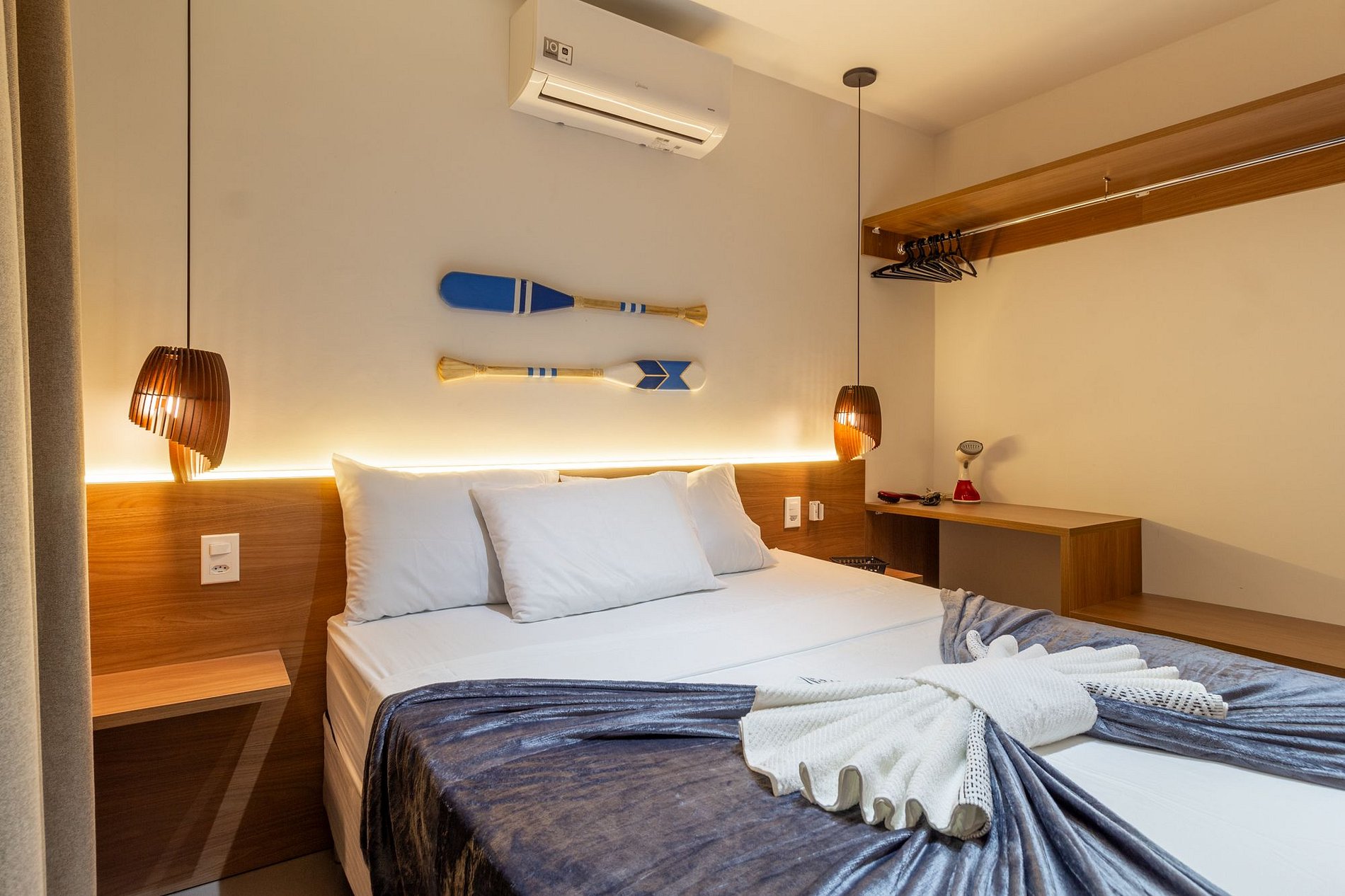 • Duas suítes espaçosas: Cada suíte dispõe de uma cama de casal, ar condicionado e chuveiro quente;