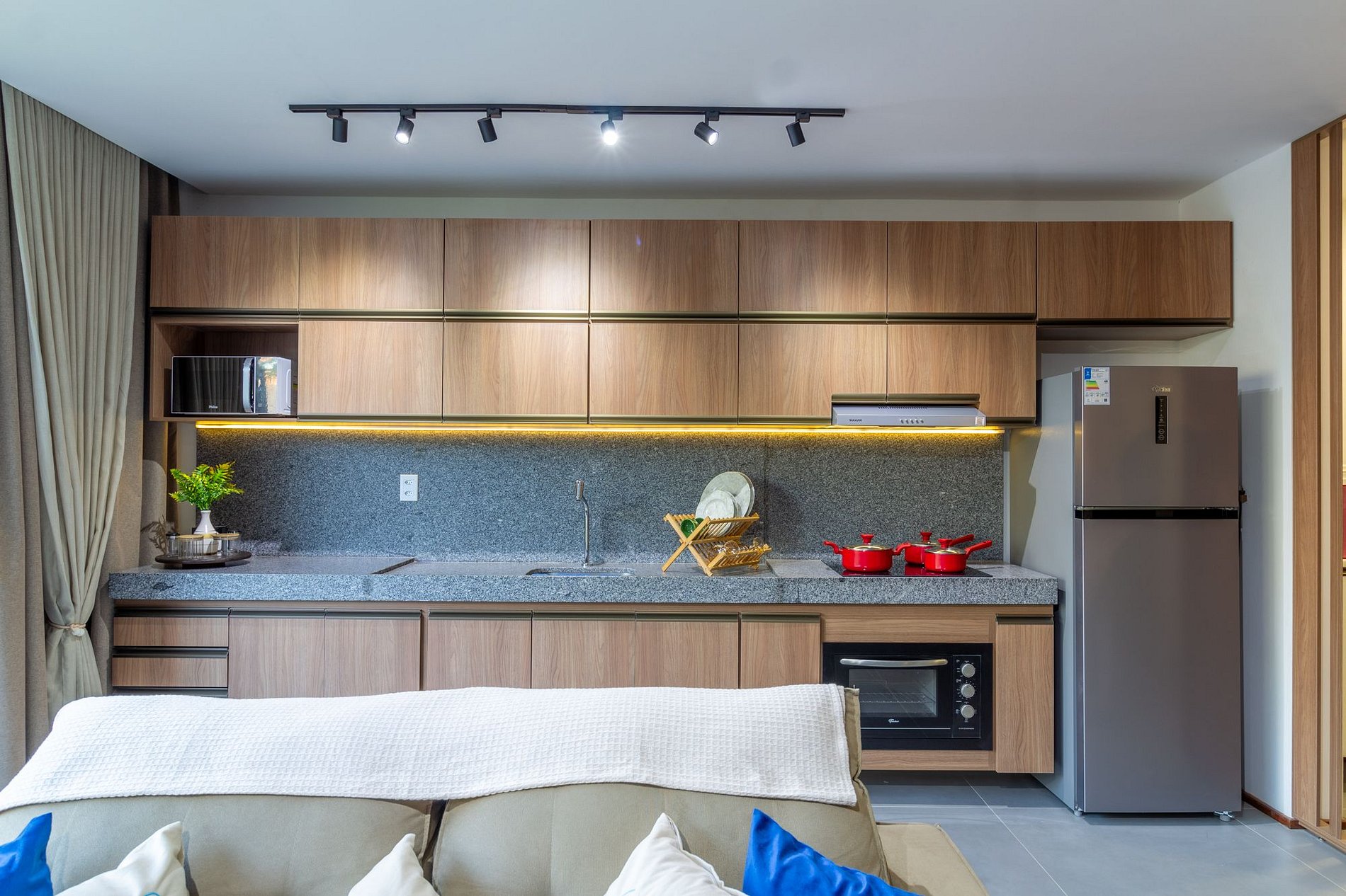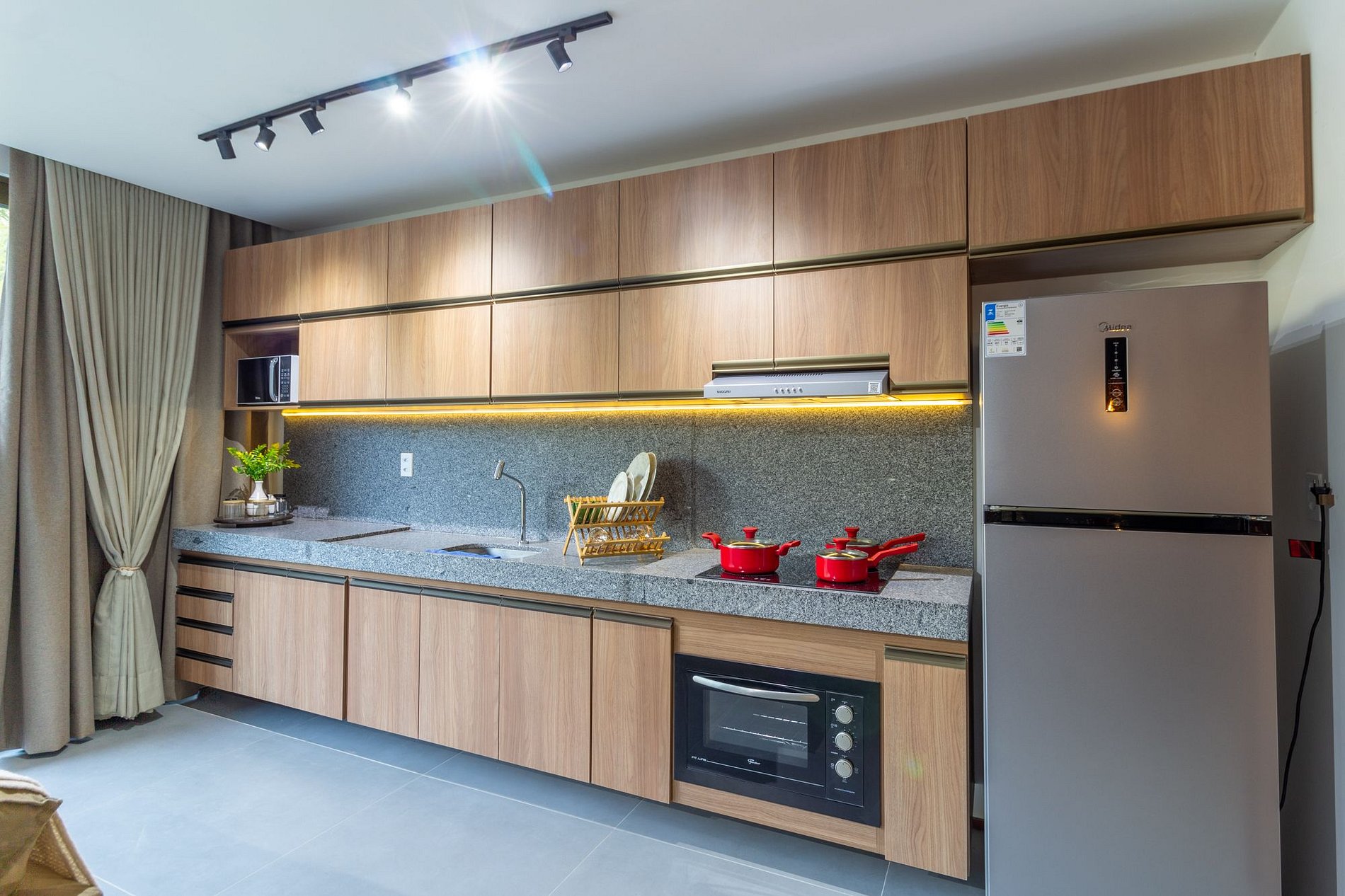 • Cozinha: Geladeira, fogão por indução, cutelaria básica;
