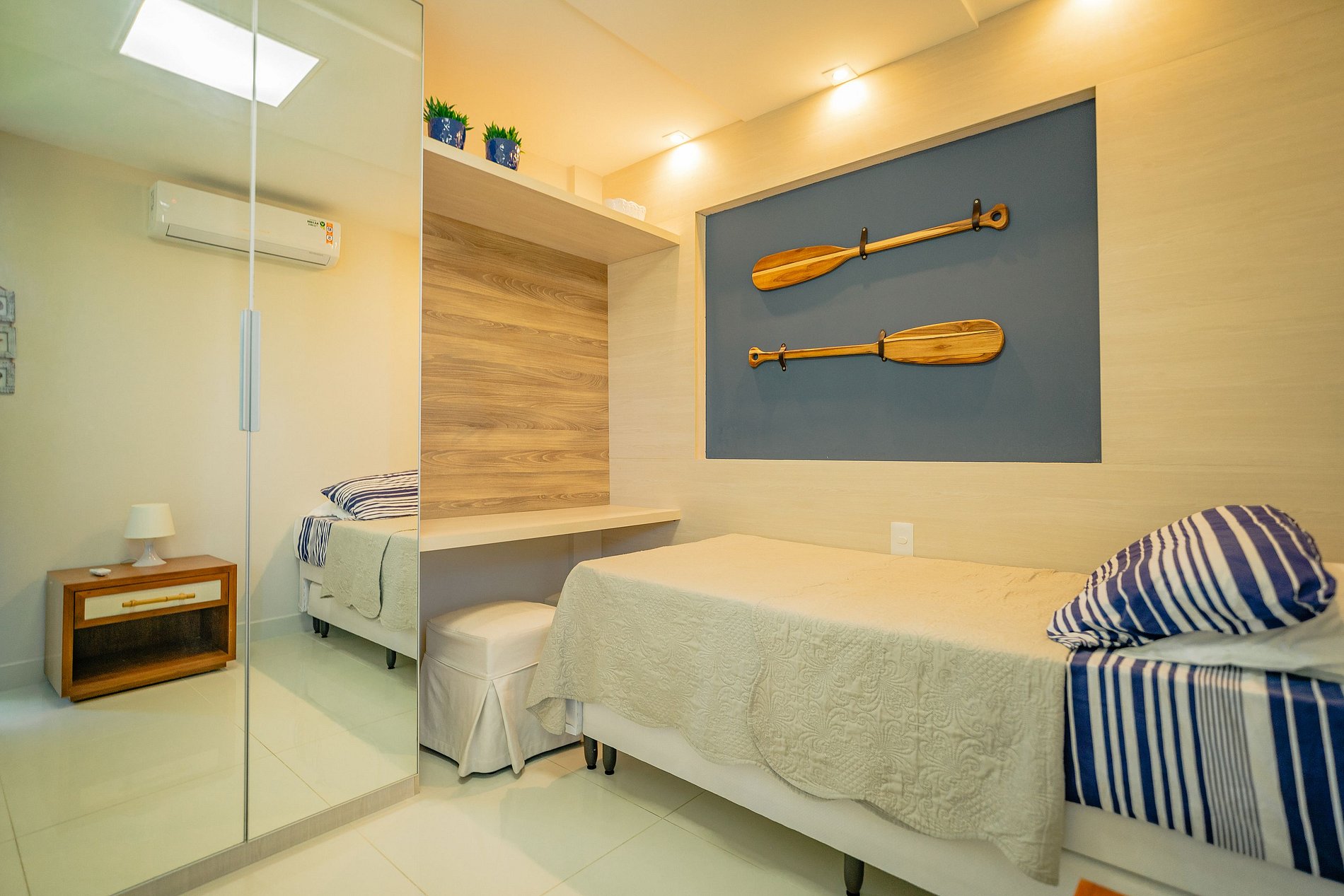 Amplo, moderno e luxuoso, o flat acomoda confortavelmente até 6 pessoas, com vista panorâmica para o mar, varanda espaçosa, 3 quartos climatizados, incluindo duas suítes, e infraestrutura adaptada para pessoas com deficiência física.