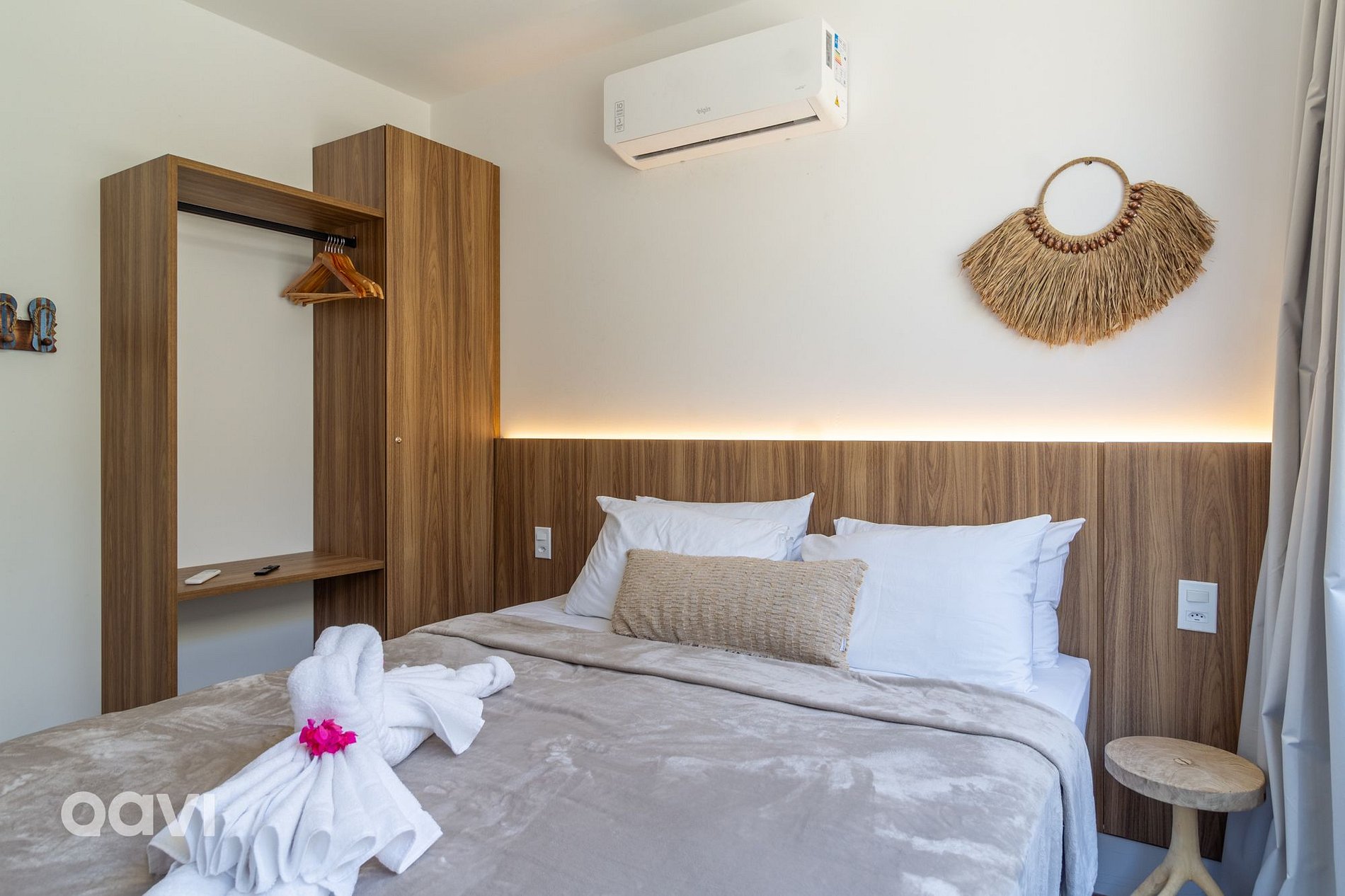 • Duas suítes espaçosas: Cada suíte dispõe de uma cama de casal, ar condicionado e chuveiro quente. Um ambiente aconchegante e privativo, ideal para relaxar após um dia de sol e mar. Com acabamentos de alta qualidade e ventilação natural, você terá todo o conforto necessário para uma estadia agradável.