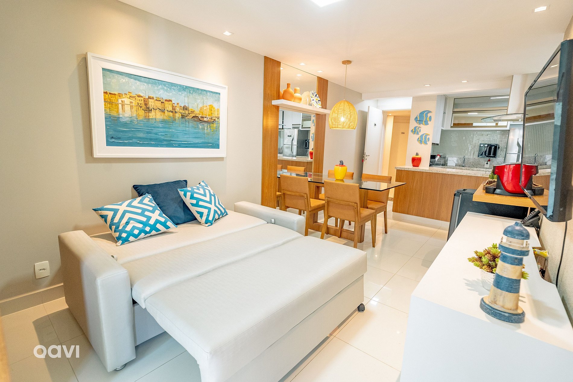 Sala de estar, Sofá-cama, Ar-condicionado, Smart TV, Ambiente integrado à sala de jantar