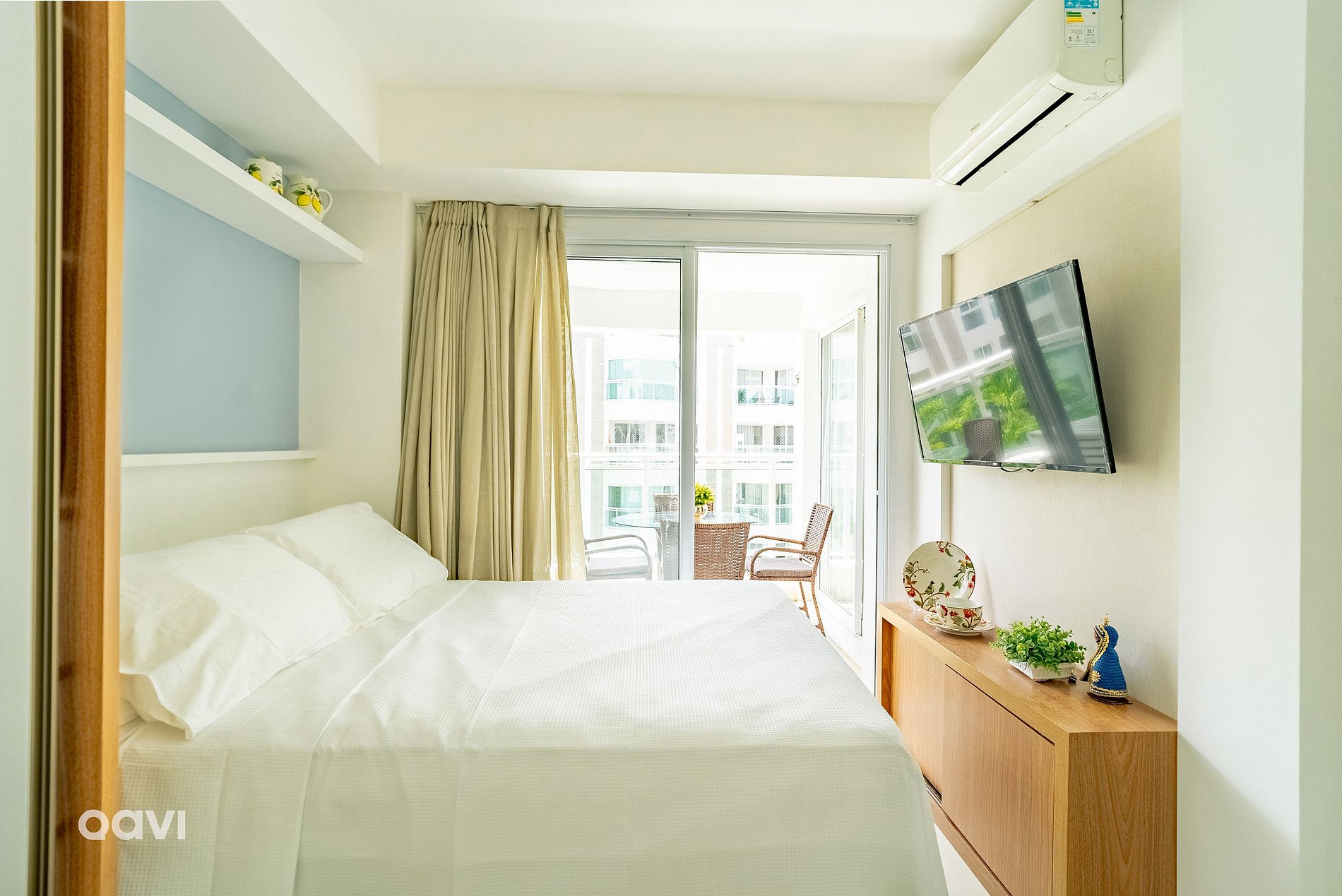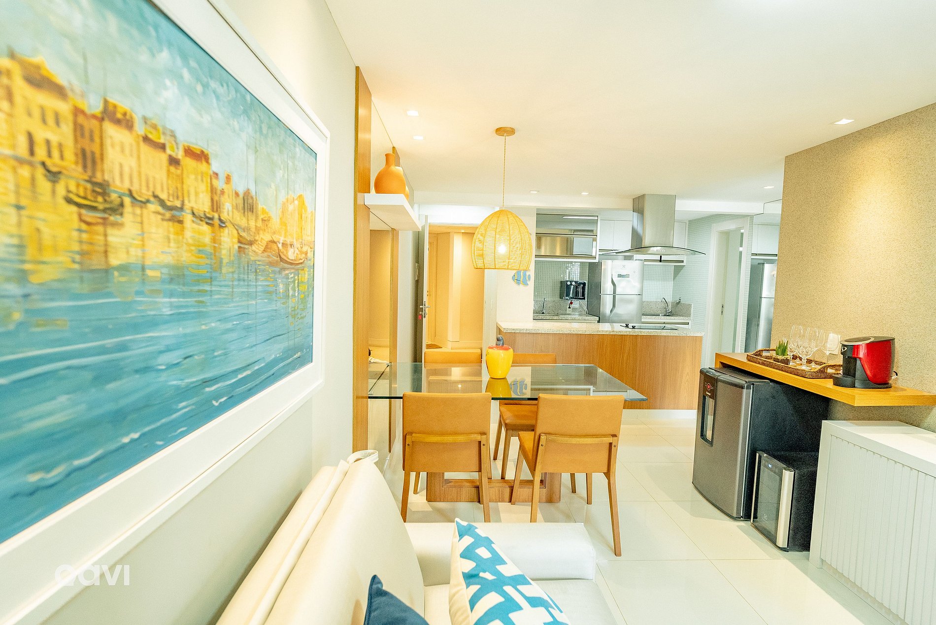 Apartamento completo e funcional, ideal para até 5 hóspedes, com ambientes climatizados, varanda e Wi-Fi.