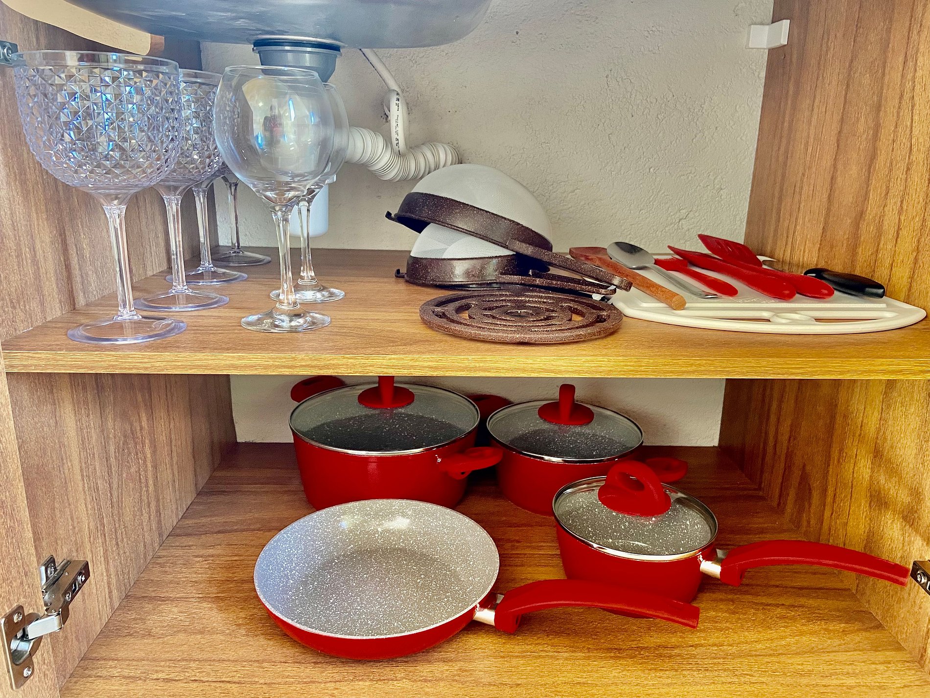 Cozinha compacta: equipada com utensílios básicos para preparo de refeições.