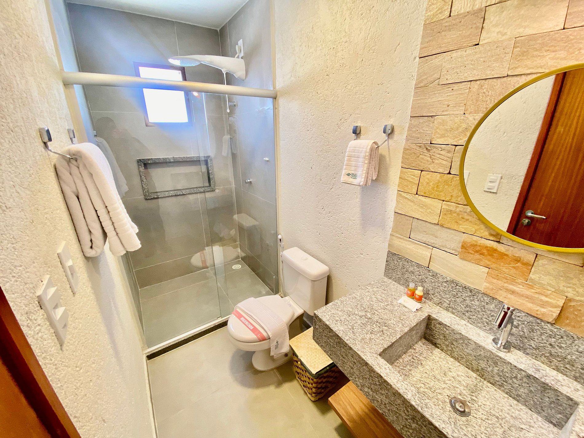 Banheiro privativo: com chuveiro e secador de cabelo.
