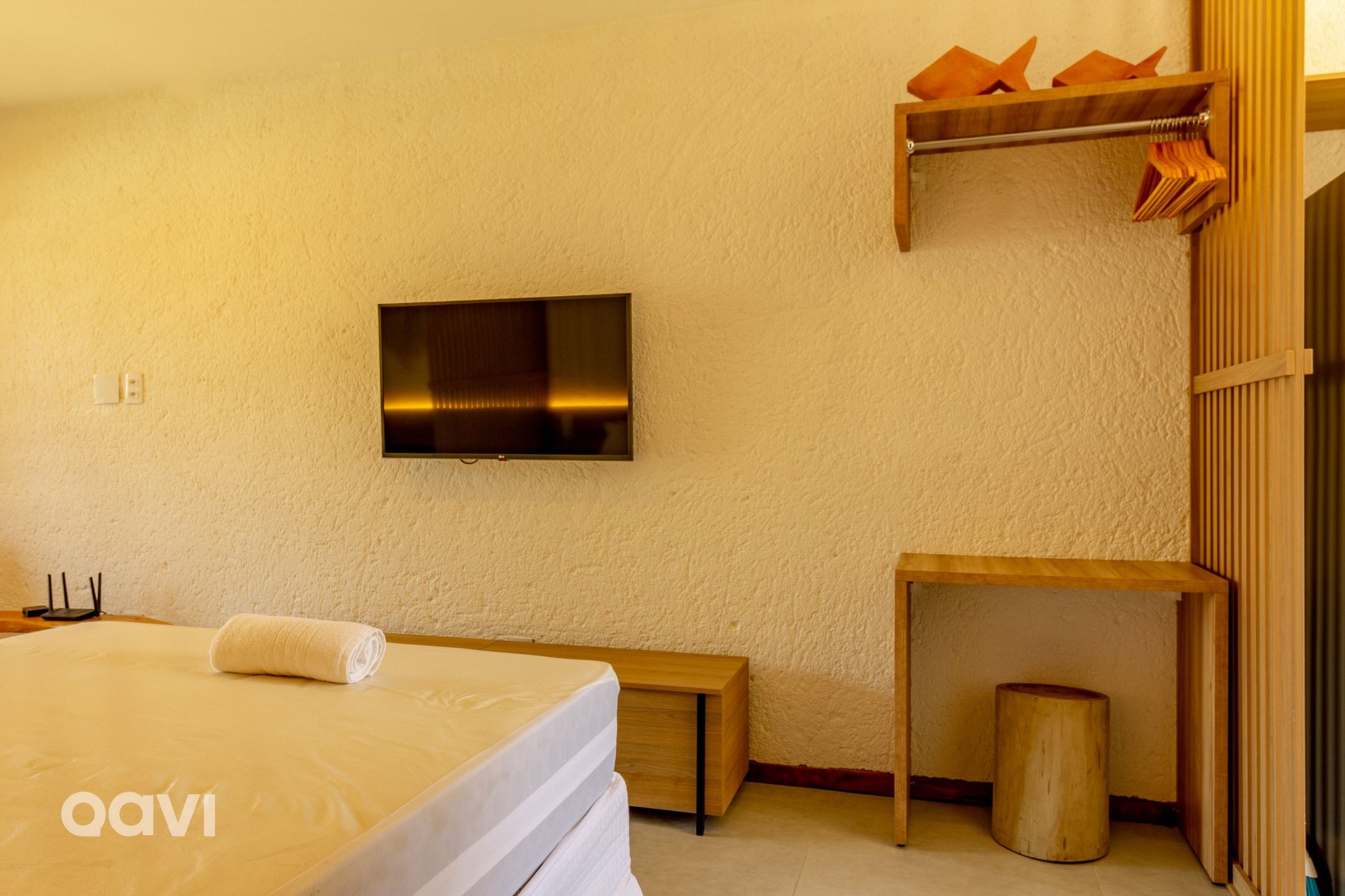 • Uma cama de casal, um sofá cama de casal, ar condicionado e televisão;