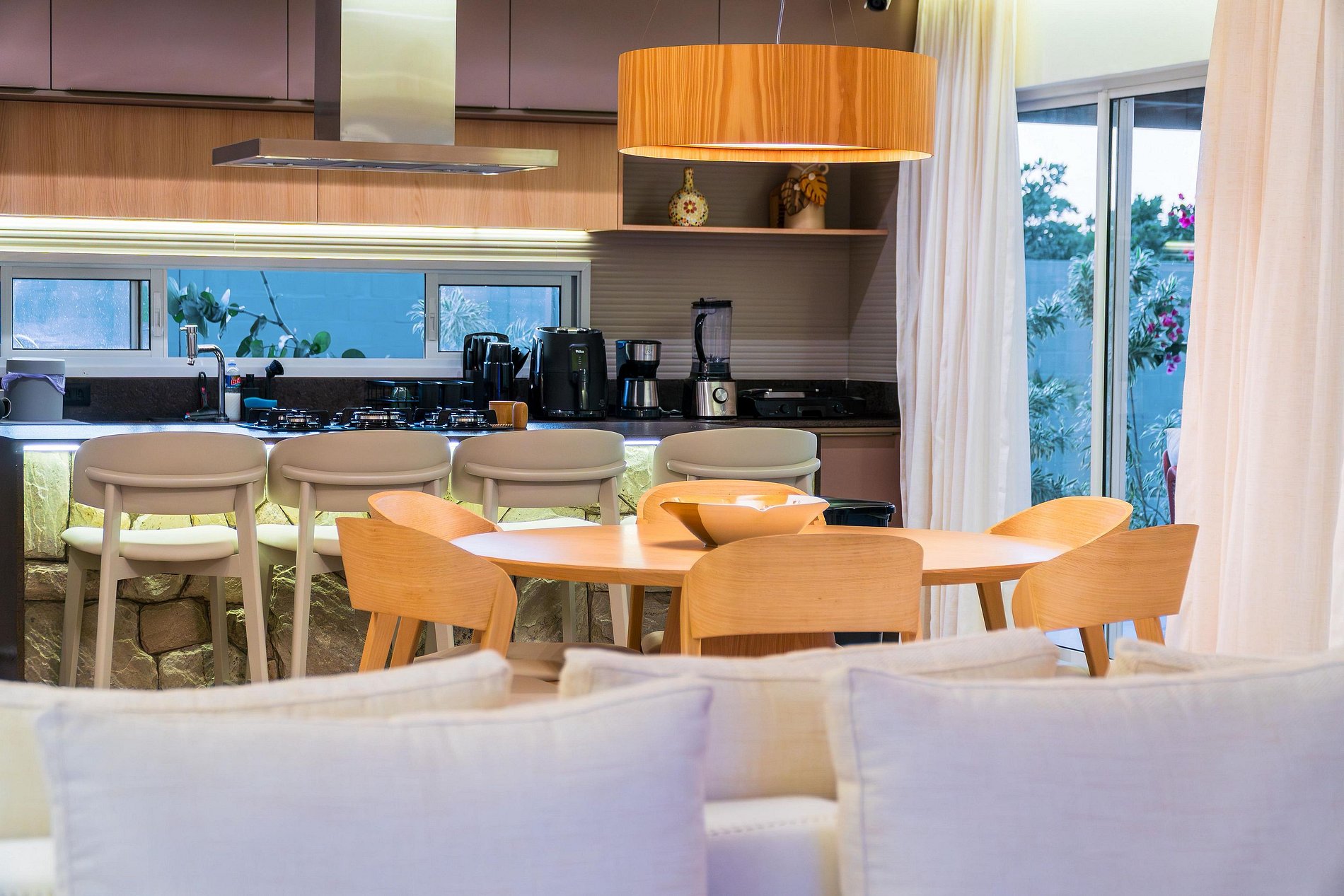 A propriedade conta com 3 suítes amplas, todas equipadas com ar-condicionado, garantindo bem-estar em qualquer época do ano. A cozinha é completa, ideal para quem gosta de preparar refeições em casa, e o rooftop panorâmico com vista mar oferece um espaço privilegiado para relaxar, apreciar o pôr do sol ou reunir a família e amigos.