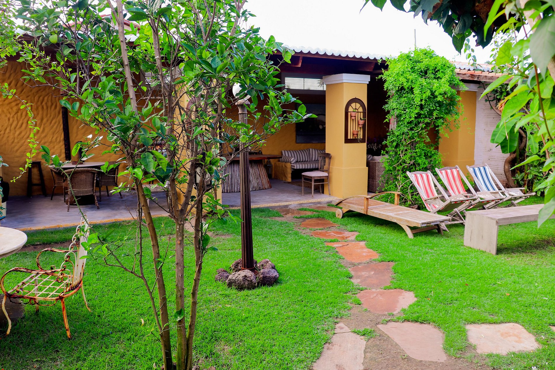 Espaço Gourmet (área comum): amplo espaço verde com uma variedade de plantas, com uma mesa redonda, 03 cadeiras de ferro, um centro de madeira, 07 espreguiçadeiras e um longo banco em madeira. Possui também uma área coberta com os seguintes itens: 01 mesa redonda com 02 cadeiras, 01 mesa e 01 bancada, ambos em madeira, com decorativos, 01 mesa de madeira com 02 espaçosos sofás para 04 pessoas, ambos, 03 confortáveis cadeiras, bancada de mármore, pia e duas cadeiras avulsas.