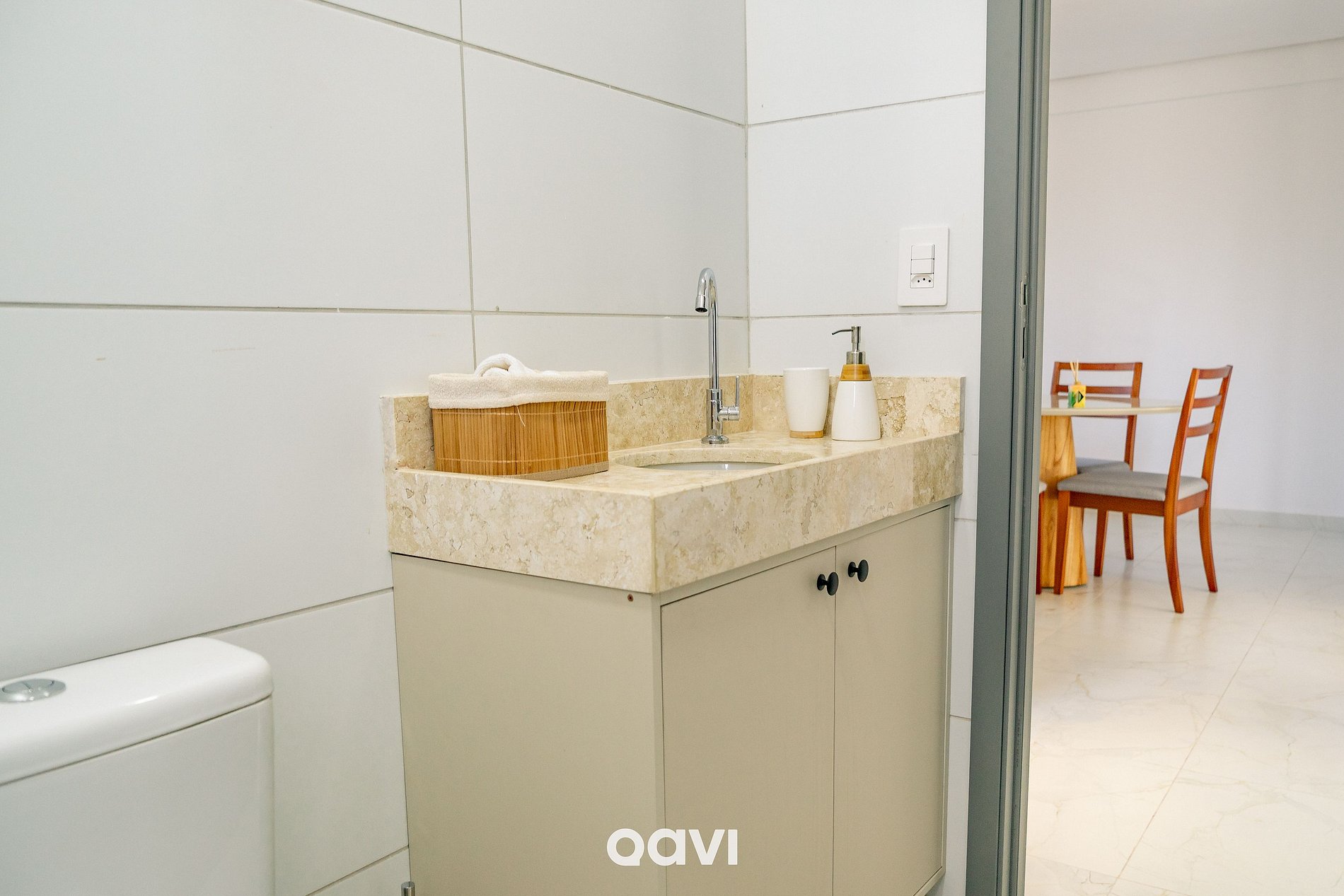 Banheiro social: banheiro completo com chuveiro elétrico.
