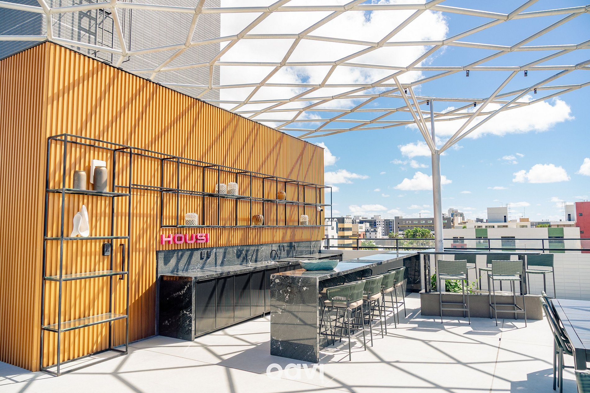 O condomínio oferece infraestrutura completa, incluindo piscina na cobertura, lavanderia, elevador delivery, piscina com borda de vidro, rooftop com lounge bar, academia, bike sharing, coworking, estacionamento coberto e portaria 24hrs.