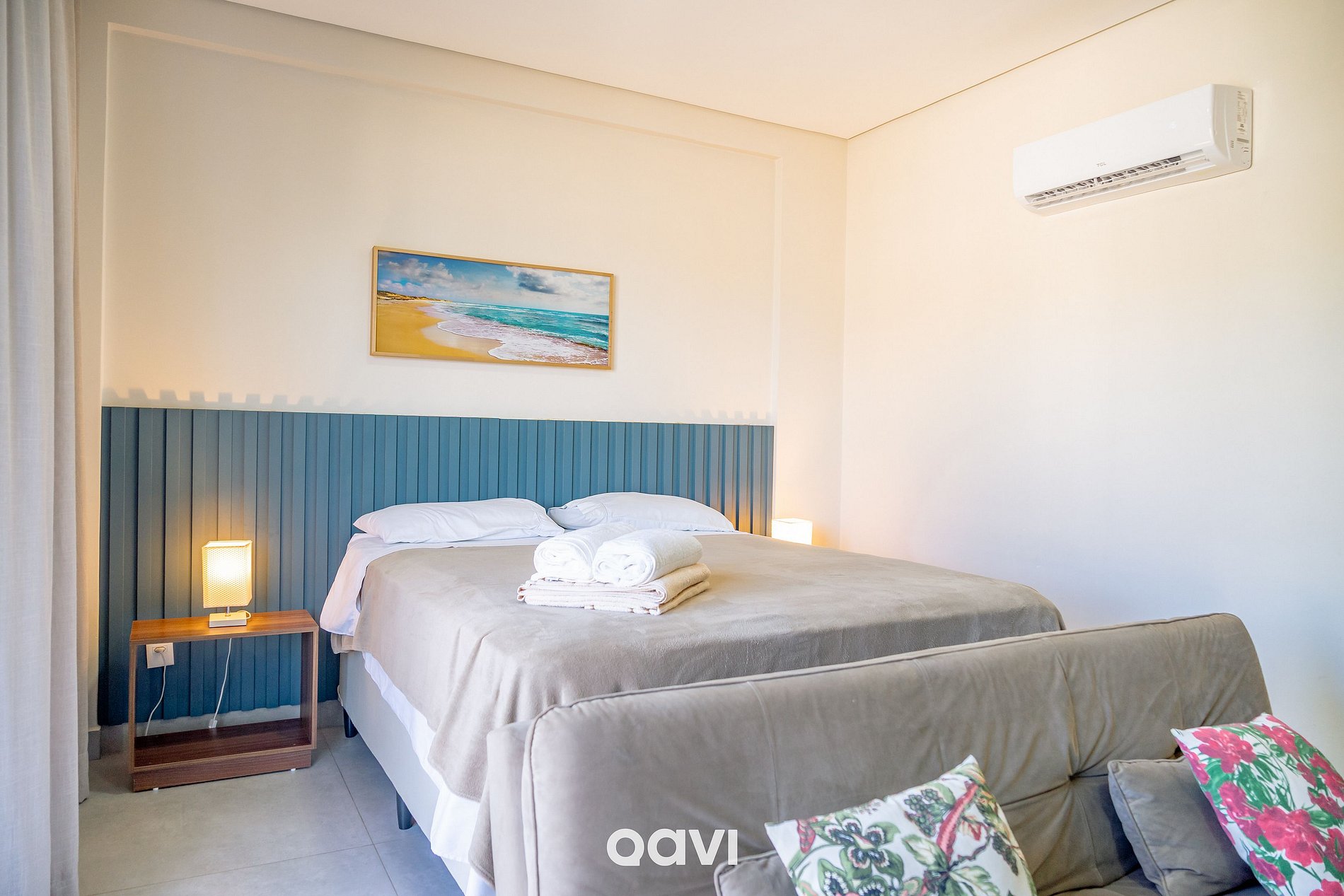 • Suíte: cama Queen + ar condicionado + TV + sofá-cama + banheiro privativo;