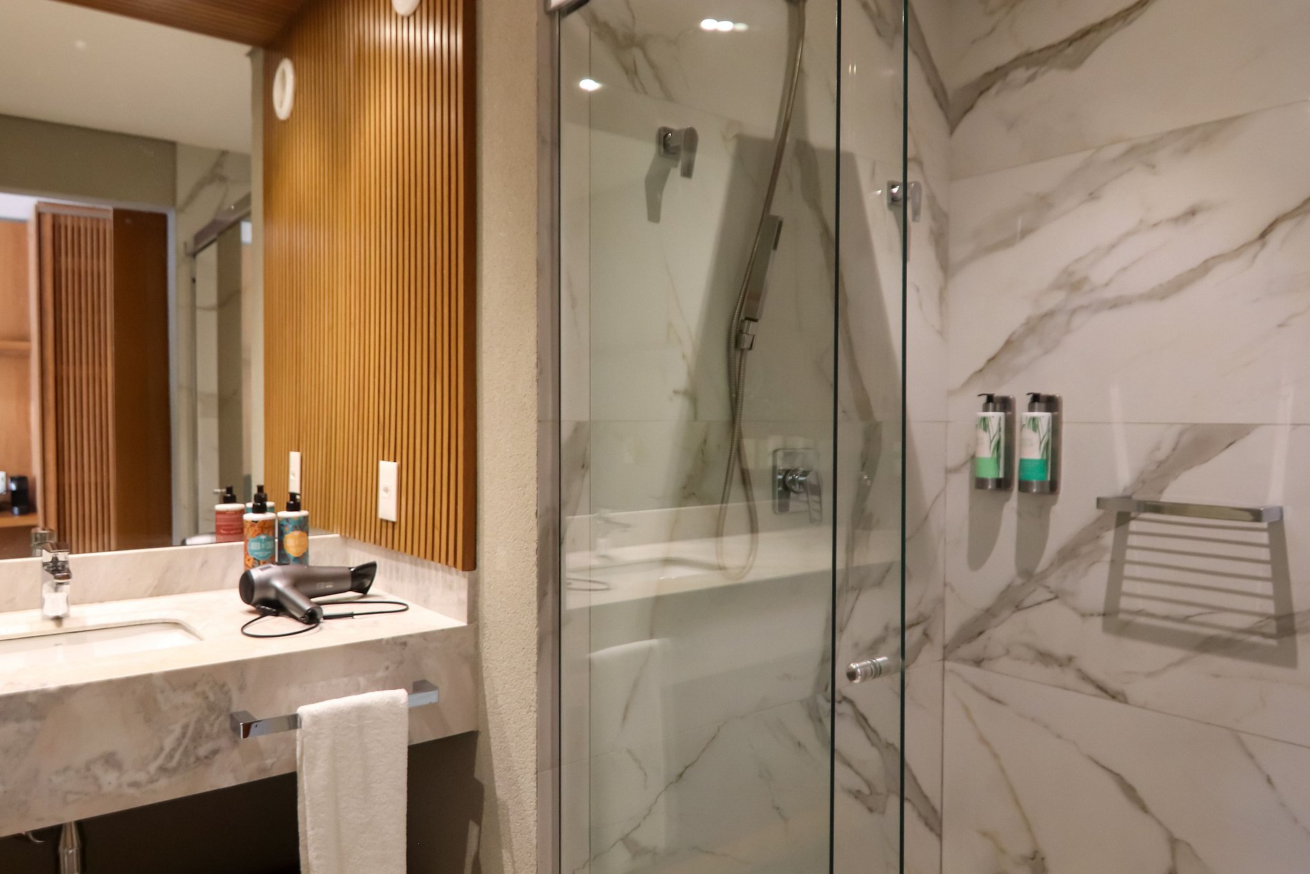 Banheiro: Chuveiro com aquecimento e arara para acomodar suas roupas com facilidade. Como toque adicional, fornecemos produtos de banho de qualidade L'Occitane Au Brésil, incluindo shampoo, condicionador e sabonete.