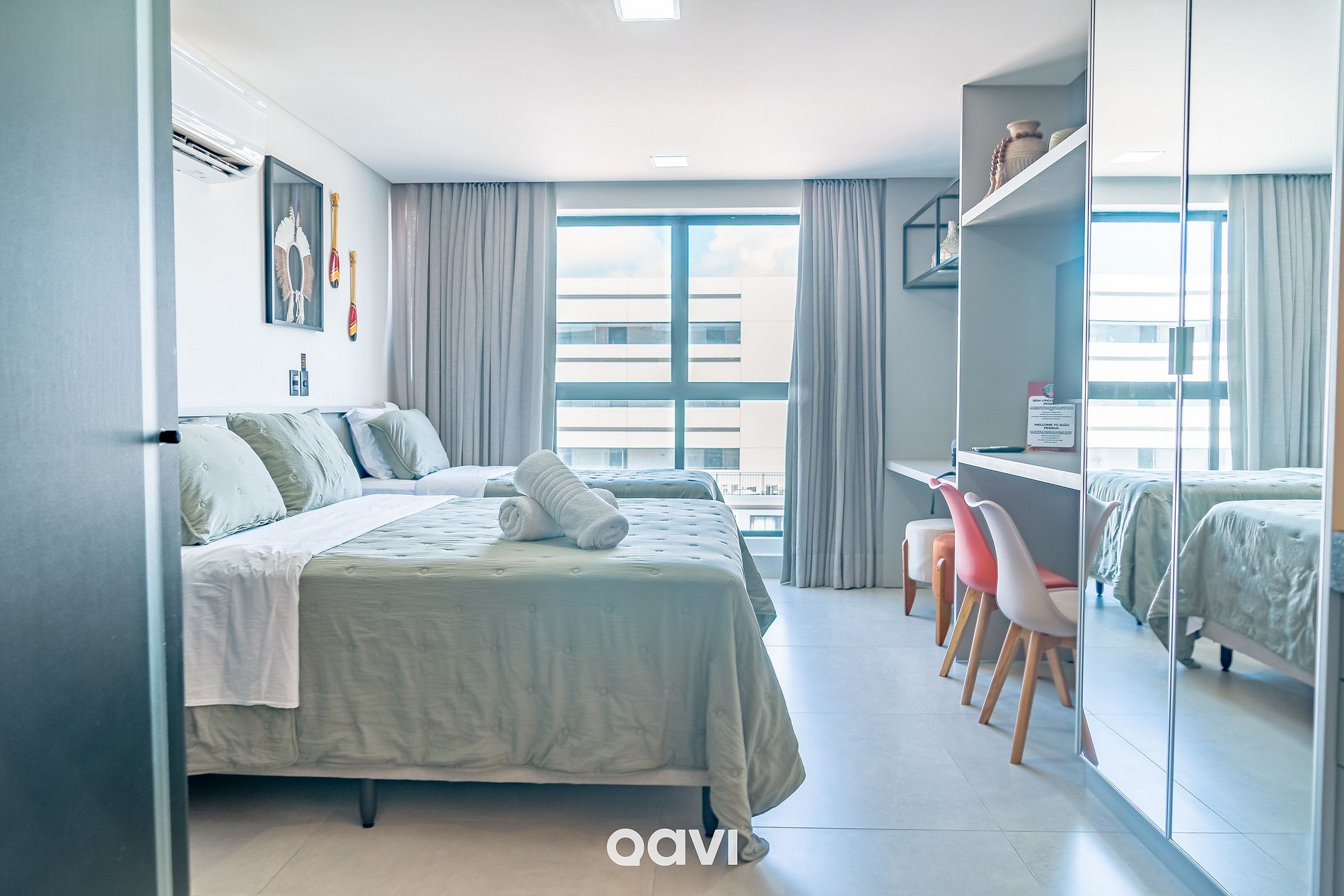 O Studio Essencial Get by Side João Pessoa by Qavi, está localizado na Praia do Bessa, no condomínio Get By Side, a apenas 70 metros do mar. Com sua atmosfera encantadora de cidade litorânea, a Praia do Bessa é repleta de bares e restaurantes de qualidade, possui uma beleza natural deslumbrante e foi apelidada de "Caribessa", destacando-se como uma das preferidas entre os viajantes e nativos.