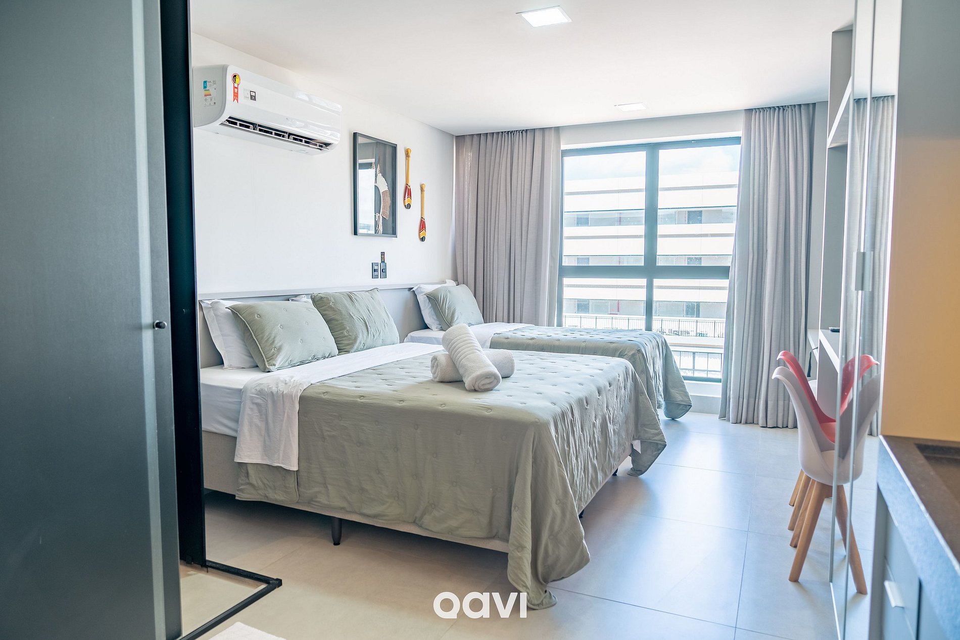 O Studio Essencial Get by Side João Pessoa by Qavi, está localizado na Praia do Bessa, no condomínio Get By Side, a apenas 70 metros do mar. Com sua atmosfera encantadora de cidade litorânea, a Praia do Bessa é repleta de bares e restaurantes de qualidade, possui uma beleza natural deslumbrante e foi apelidada de "Caribessa", destacando-se como uma das preferidas entre os viajantes e nativos.