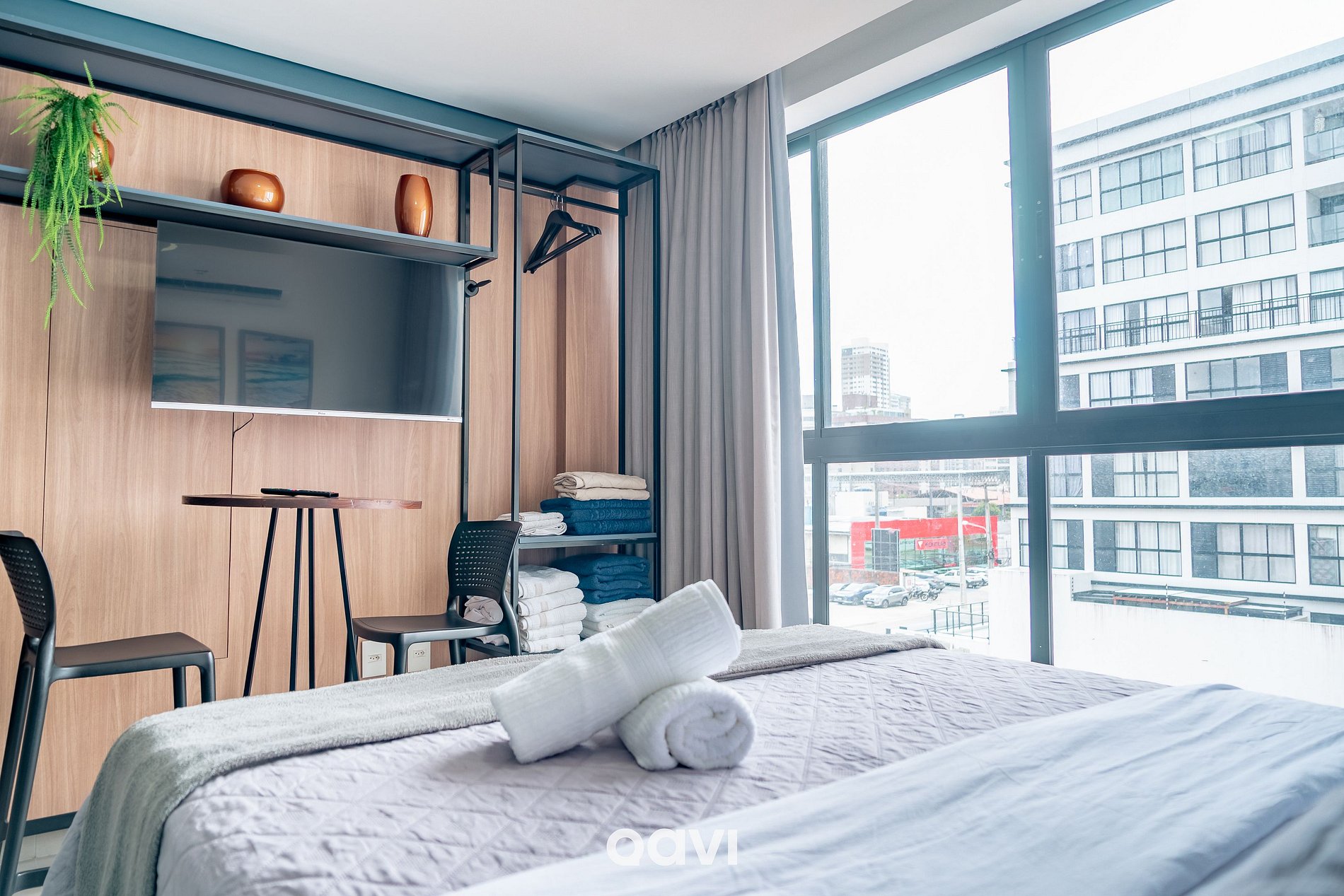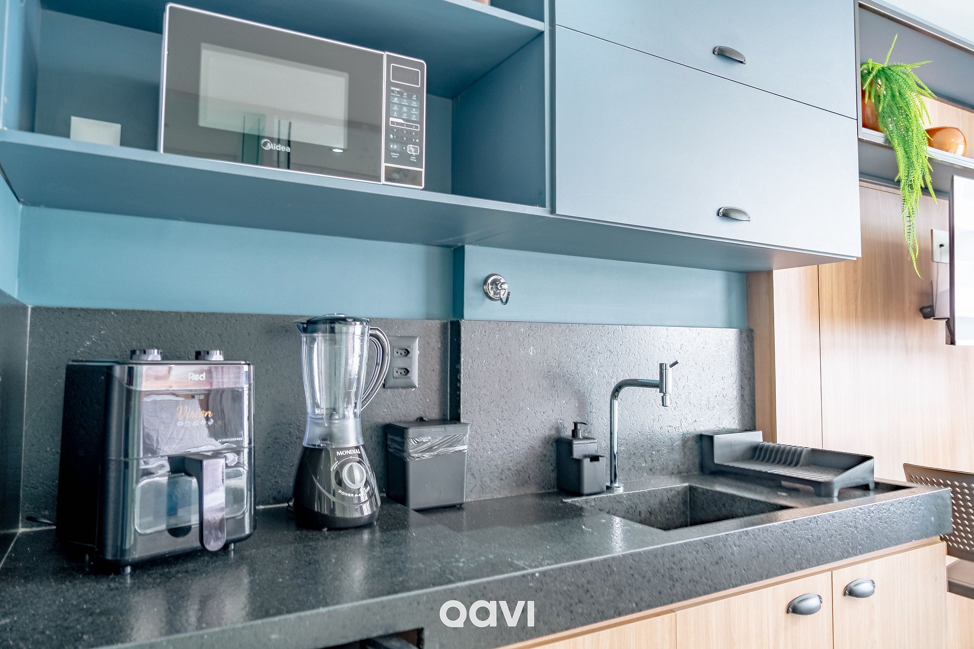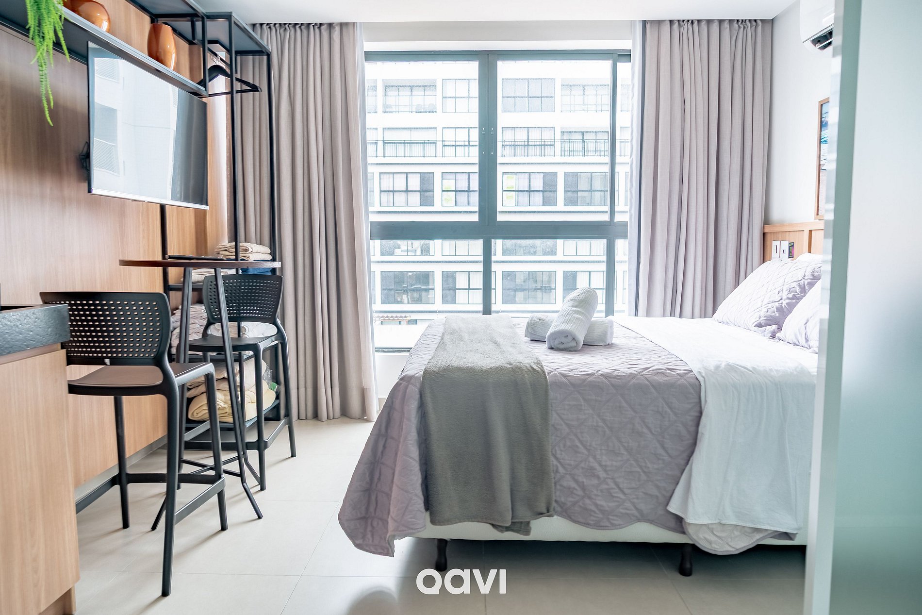 O apartamento que tem um finíssimo acabamento, é uma suíte integrada, com cozinha e área de estudo/trabalho e Wi-fi, sendo todo o ambiente planejado para proporcionar conforto e praticidade aos hóspedes.