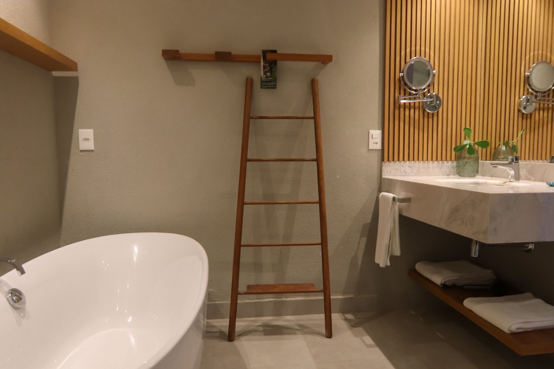Banheiro: Banheira pra relaxar, chuveiro com aquecimento e arara para acomodar suas roupas com facilidade. Como toque adicional, fornecemos produtos de banho de qualidade L'Occitane Au Brésil, incluindo shampoo, condicionador e sabonete.