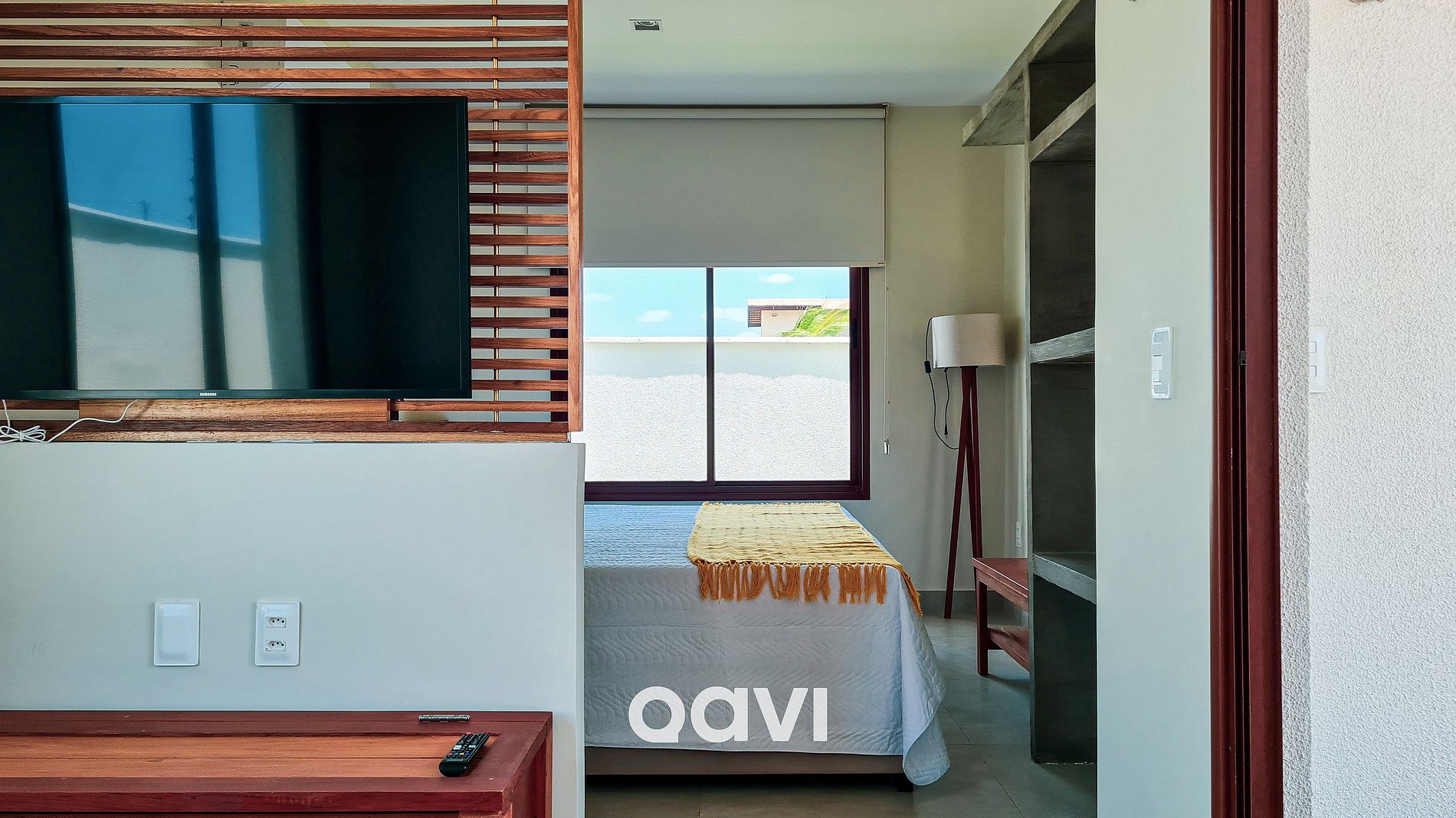Suíte interna: Quarto adaptado para cadeirante e contém uma Cama queen, além de uma cama de solteiro acoplada; TV com função smart; rack com armários; guarda roupas; ar-condicionado e cortina blackout. Banheiro adaptado com barras para apoiar as mãos; duas pias; espelho; porta sabonetes, escovas e outros itens de higiene; ducha higiênica; barra de apoio dentro do box; porta toalhas e chuveiro aquecido via energia solar.