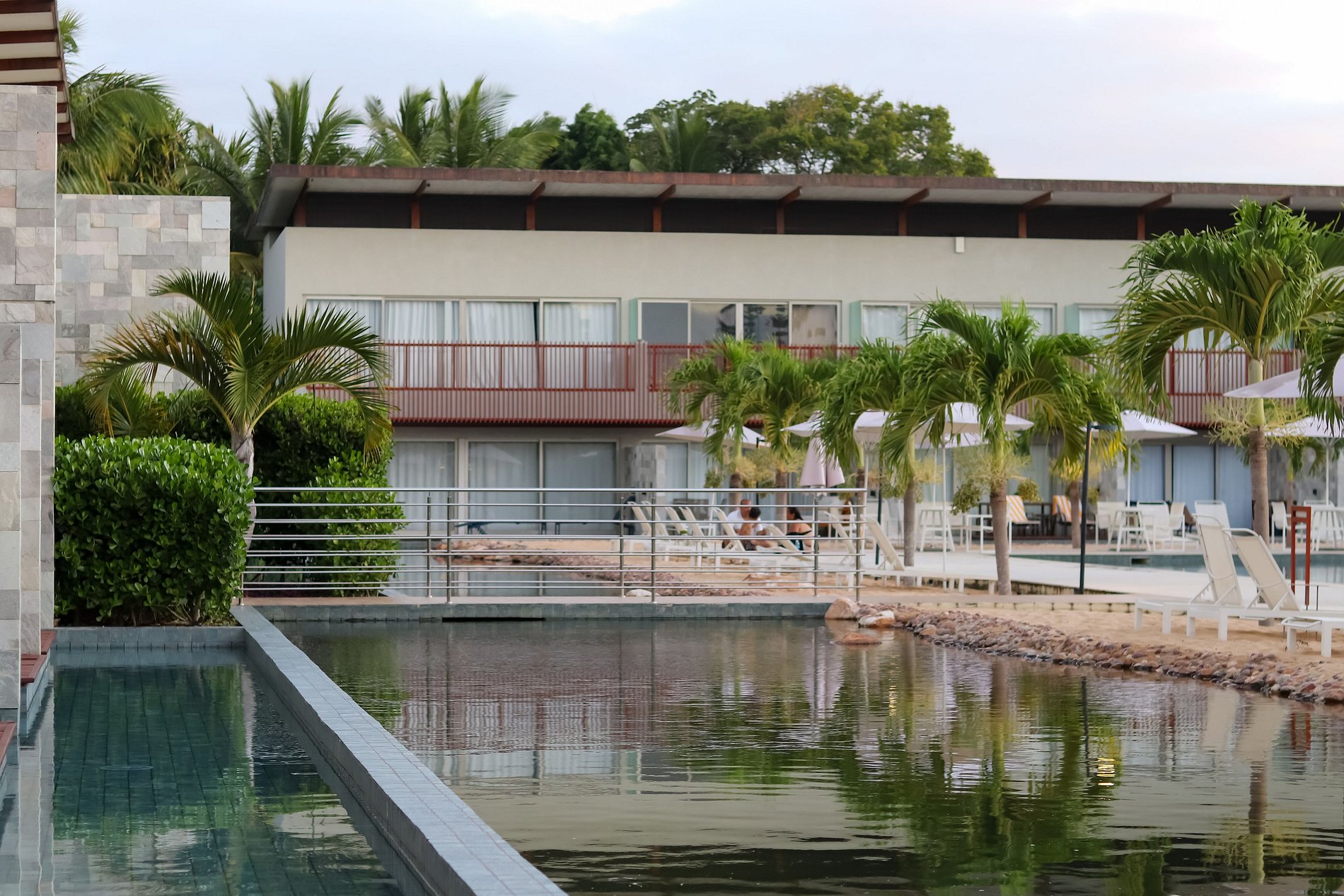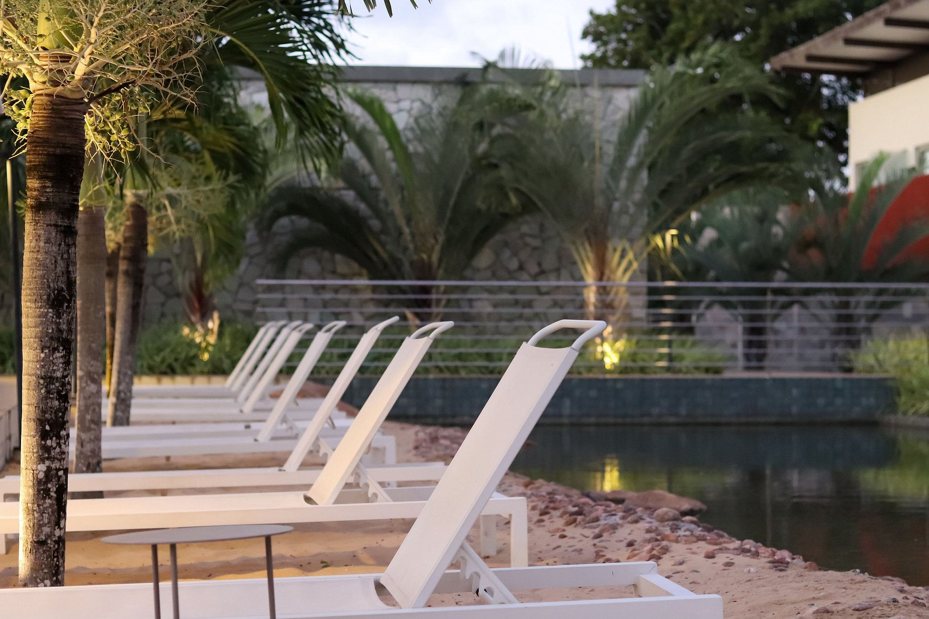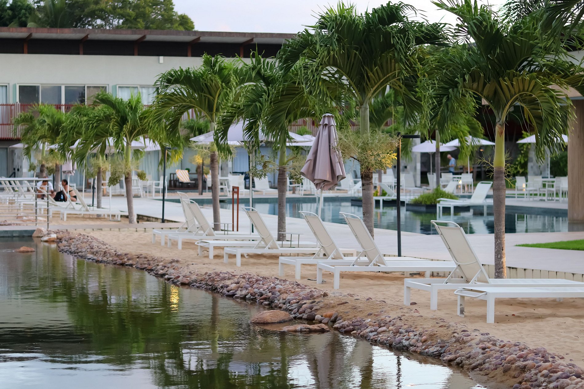 O condomínio possui um belo jardim e uma piscina adulta central, além disso, possui uma praia artificial com espreguiçadeiras, academia e estacionamento privativo (1 vaga por flat).