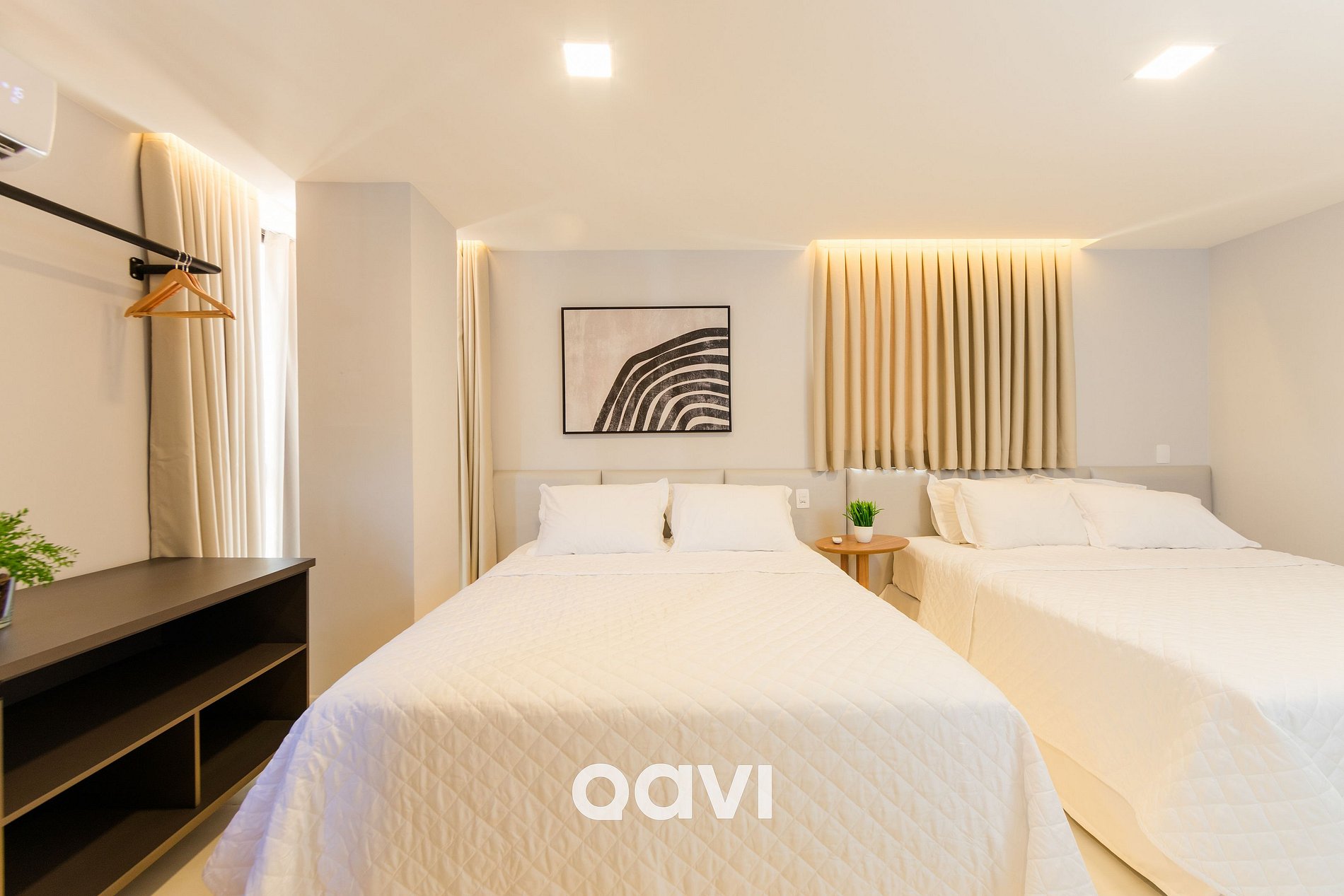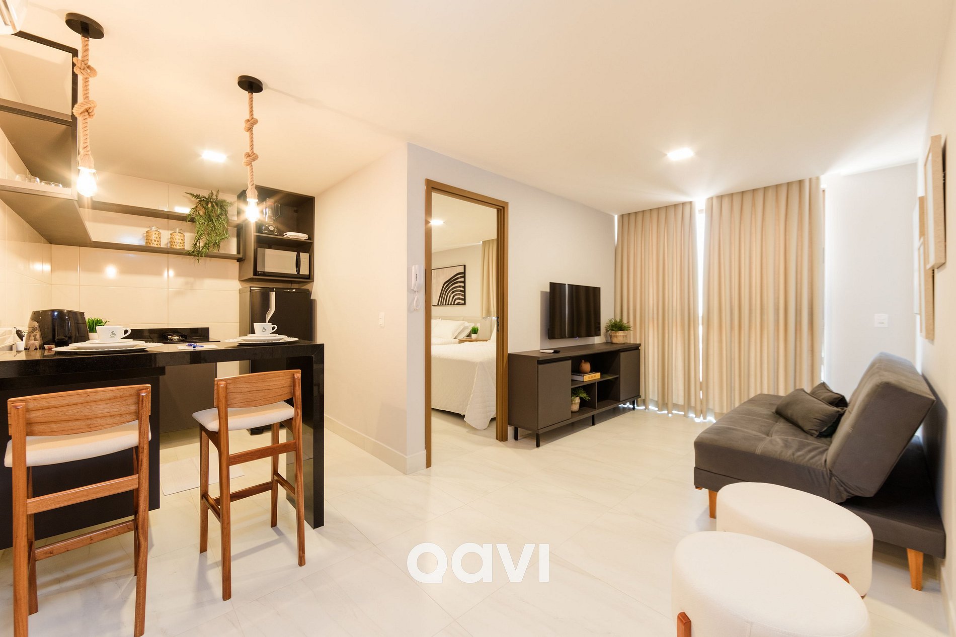 Nossos flats foram projetados para oferecer o máximo conforto. Escolha entre unidades com 1 ou 2 quartos, para até 5 pessoas, com sala de estar e cozinha equipada. Cada espaço foi habilmente decorado para criar um ambiente acolhedor e requintado proporcionando um refúgio ideal para casais, famílias ou grupos de amigos que desejam explorar as maravilhas de João Pessoa.