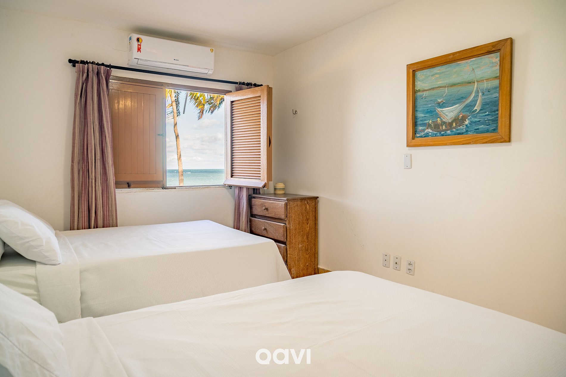 Suíte 3: 2 camas queen, ar-condicionado, armário e banheiro completo.